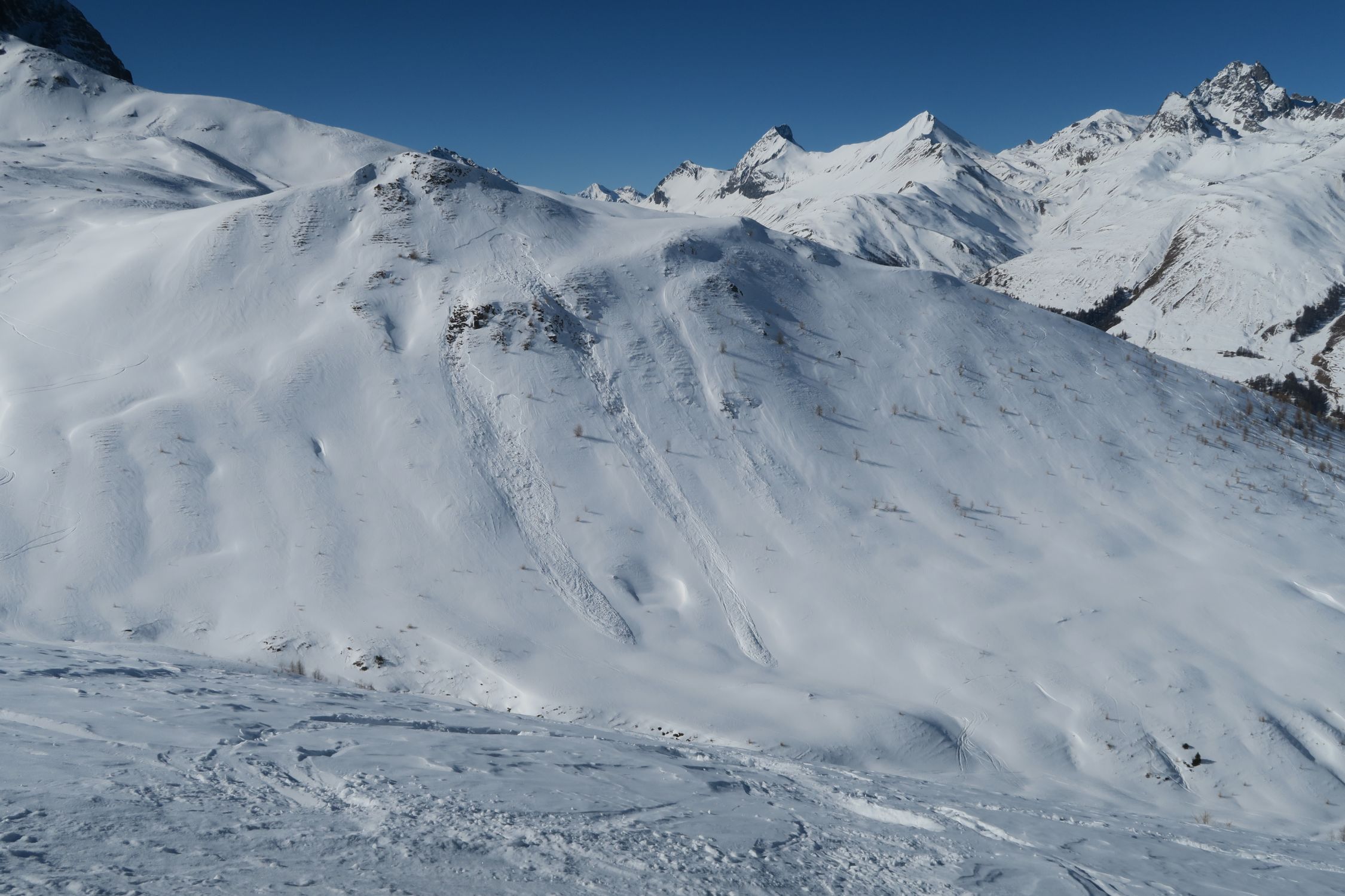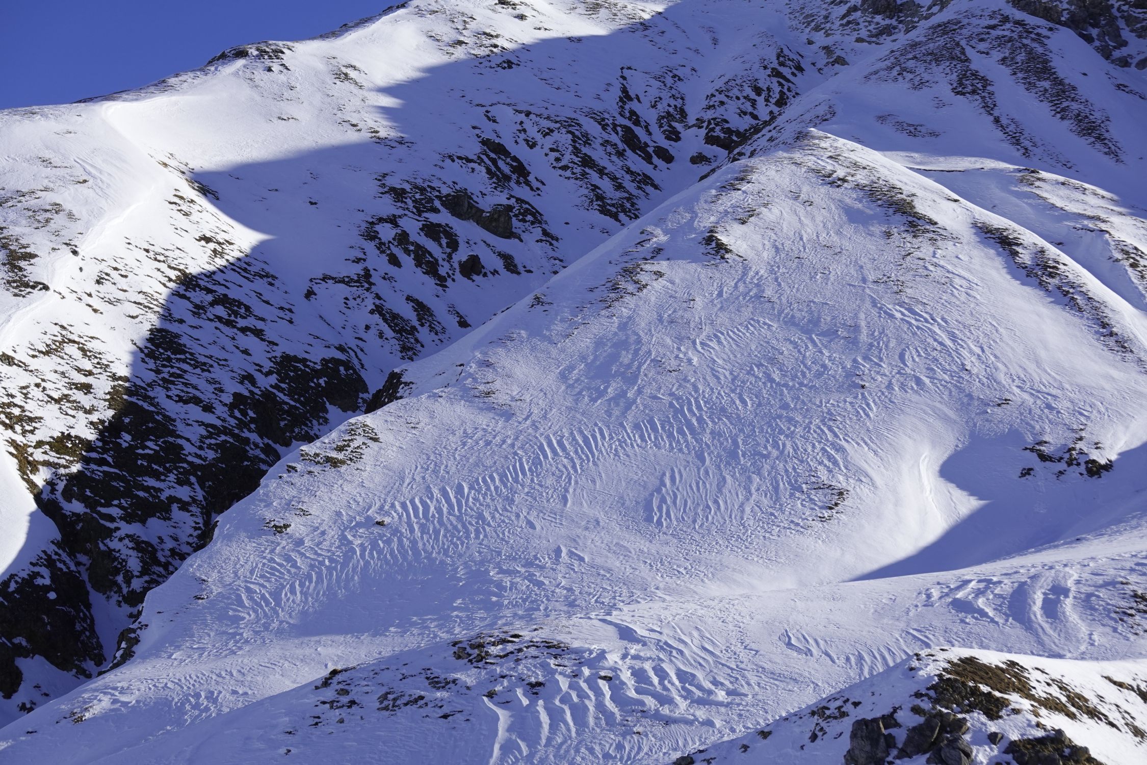 Gute Spur trotz teilweise Pistenverhältnissen. Von Fuorcla Giavagl bis Gipfel abgeblasen (Harscheisen empfehlenswert). Abfahrt mehrheitlich mit Windharsch (und ganz selten etwas Pulver) bis 2300 müM. Danach gepistet bis zum Ausgangspunkt. Genügend Schnee; Steine sichtbar, können aber umfahren werden.