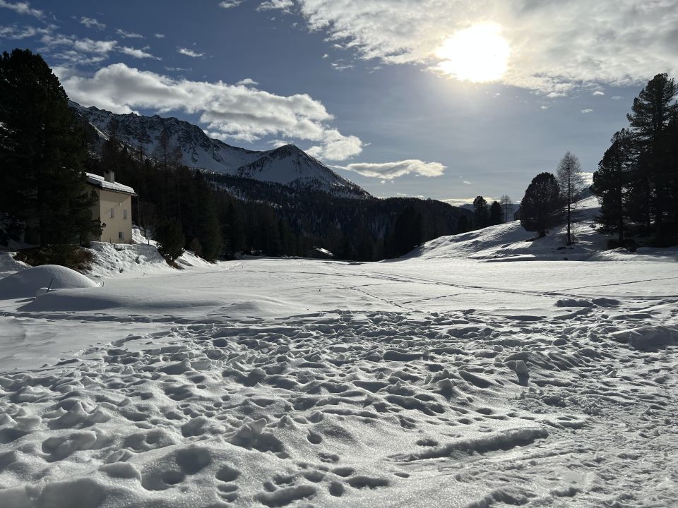 Strasse von Sfazù bis zur Hütte schneebedeckt, allgemein wenig Schnee