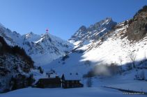 Der Aufstieg mit Ski / zu Fuss auf dem Wanderweg via Chräienhöreli auf dem Schneeschuhtrain kann nicht empfohlen werden. Stellenweise eng und abdrängend. Objektiv gesehen gefährlich.