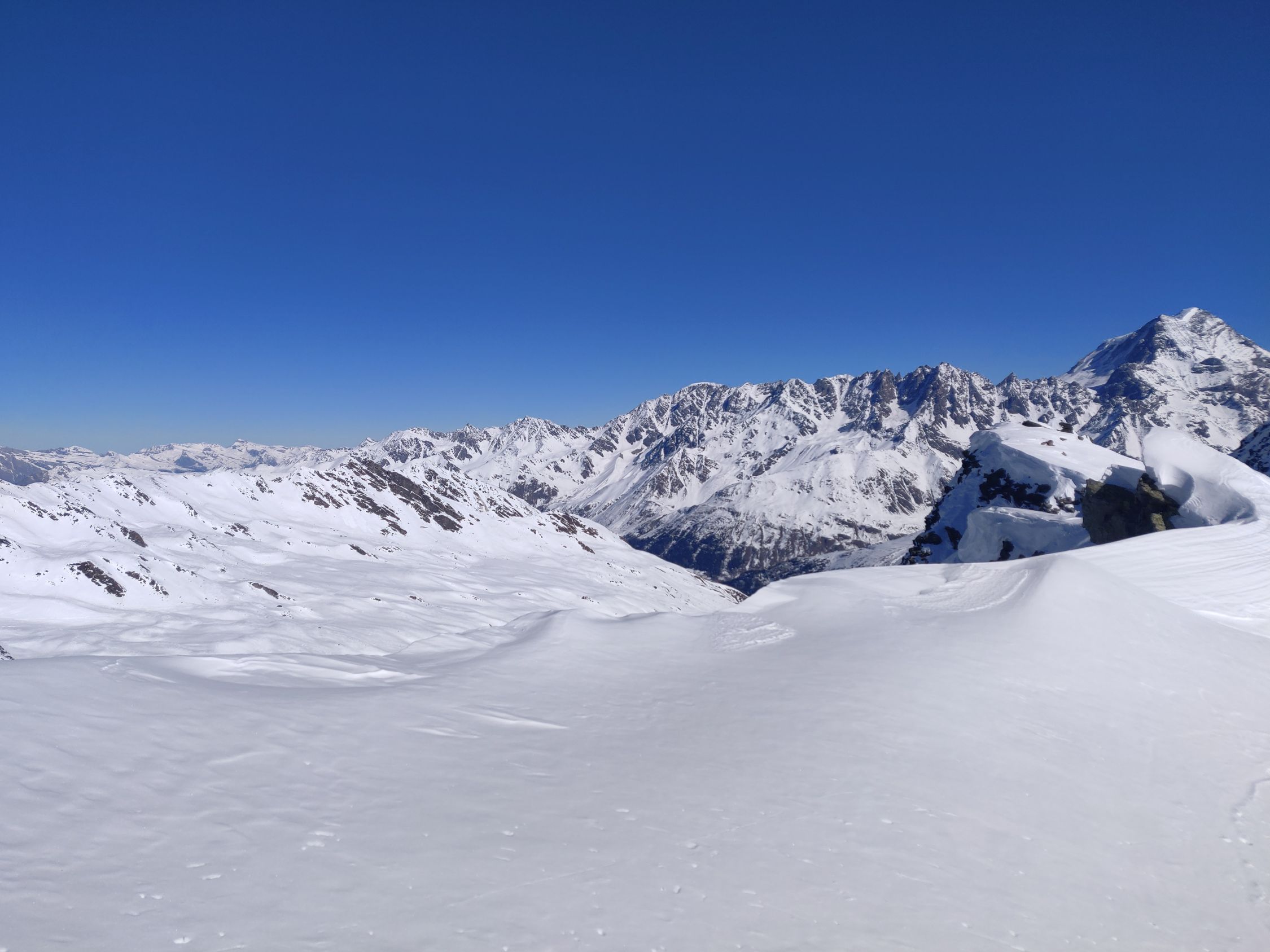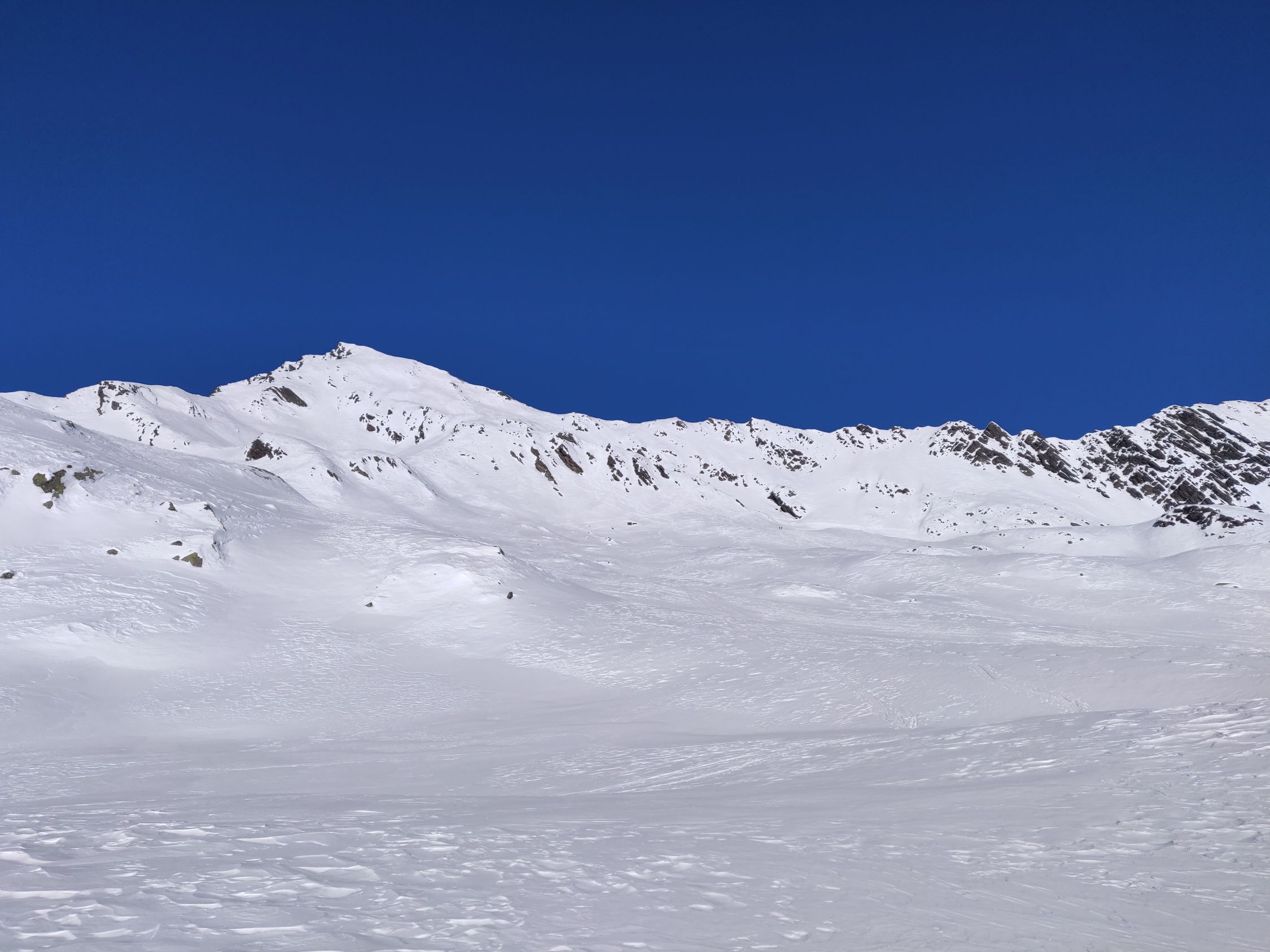 Durchgehende Schneedecke, oft aber eher dünn. Allgemein sehr hart und teils vereist. Nachmittags mit der Sonne teils schöner Sulz zum Fahren.