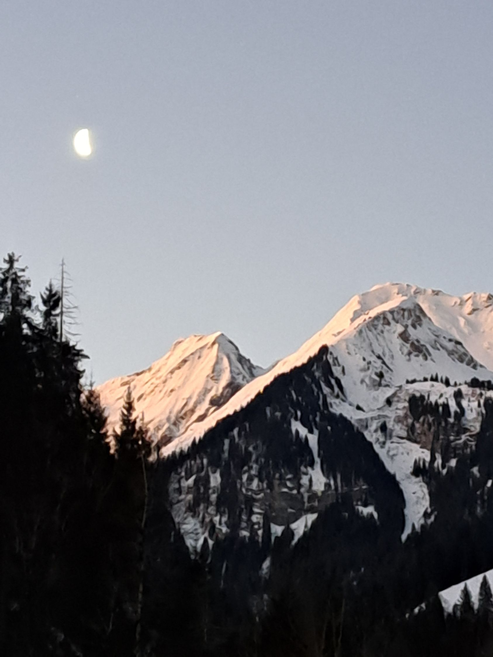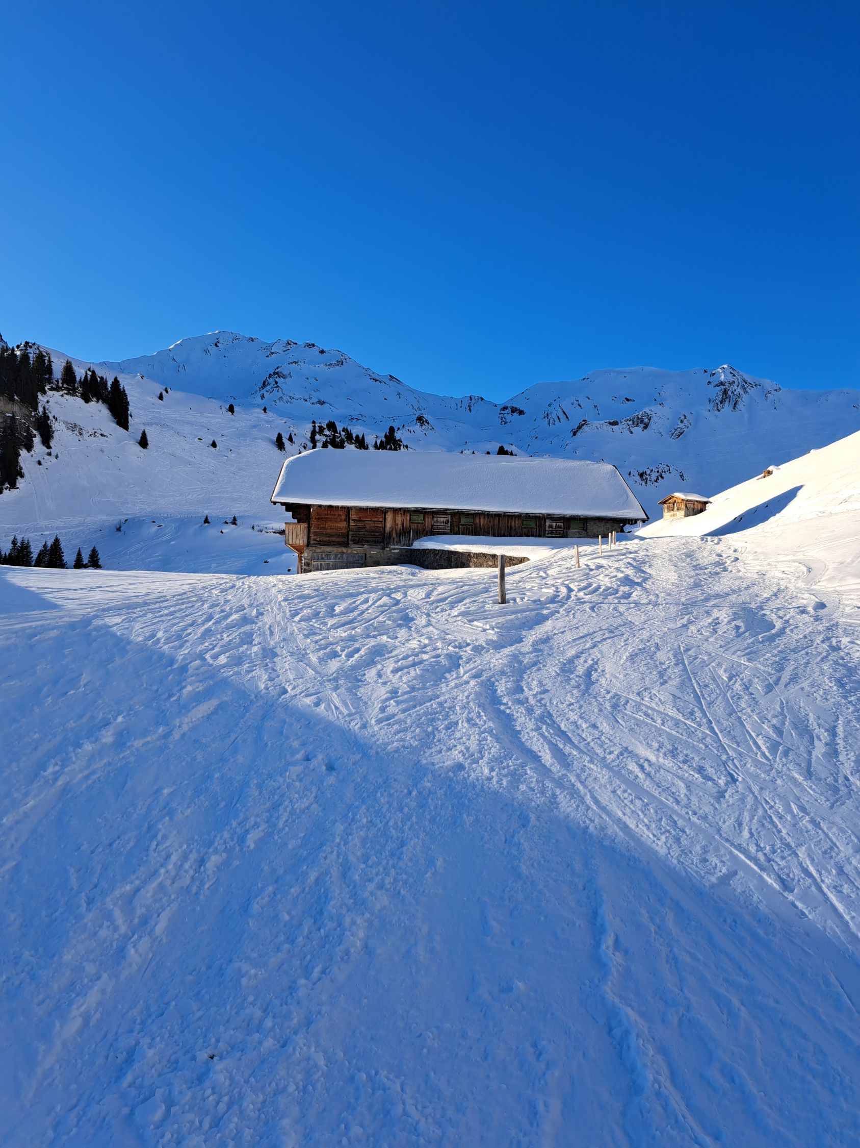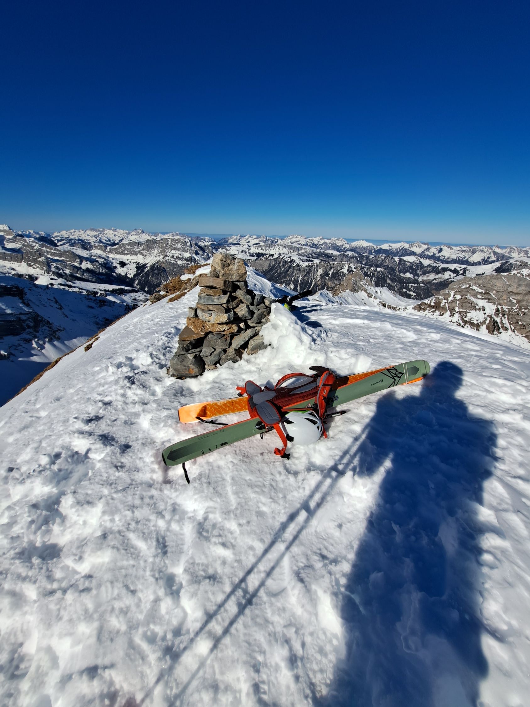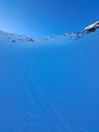 Aufstieg gespurt bis Gipfel,die letzden 50 hm zu Fuss.Abfahrt(10.30 Uhr) nordseitig des Grates (hart tragend) und Einfahrt Wand auf ca 2350 m..zu unserem Erstaunen null verfirnt nach all der sonnigen Tagen.etwas feuchter Pulver mit etwas Wind.aber schön und sicher zu fahren,unterer Teil sogar fluffi Pulver.Hang ob Alphütte schon sehr sulzig und heikel für Rutsche.Ausfahrtshang ganz rechts in Schatten in super Pulver.Strasse retour sehr gut zu fahren.