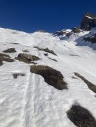 Start ab Bussalp. Die Aufstiegsspur ab Bussalp ist fast durchgehend schneebedeckt, im Gebiet Oberläger/Wurematta hat es dann und wann apere Stellen, die zur Zeit aber noch problemlos umgangen werden können.