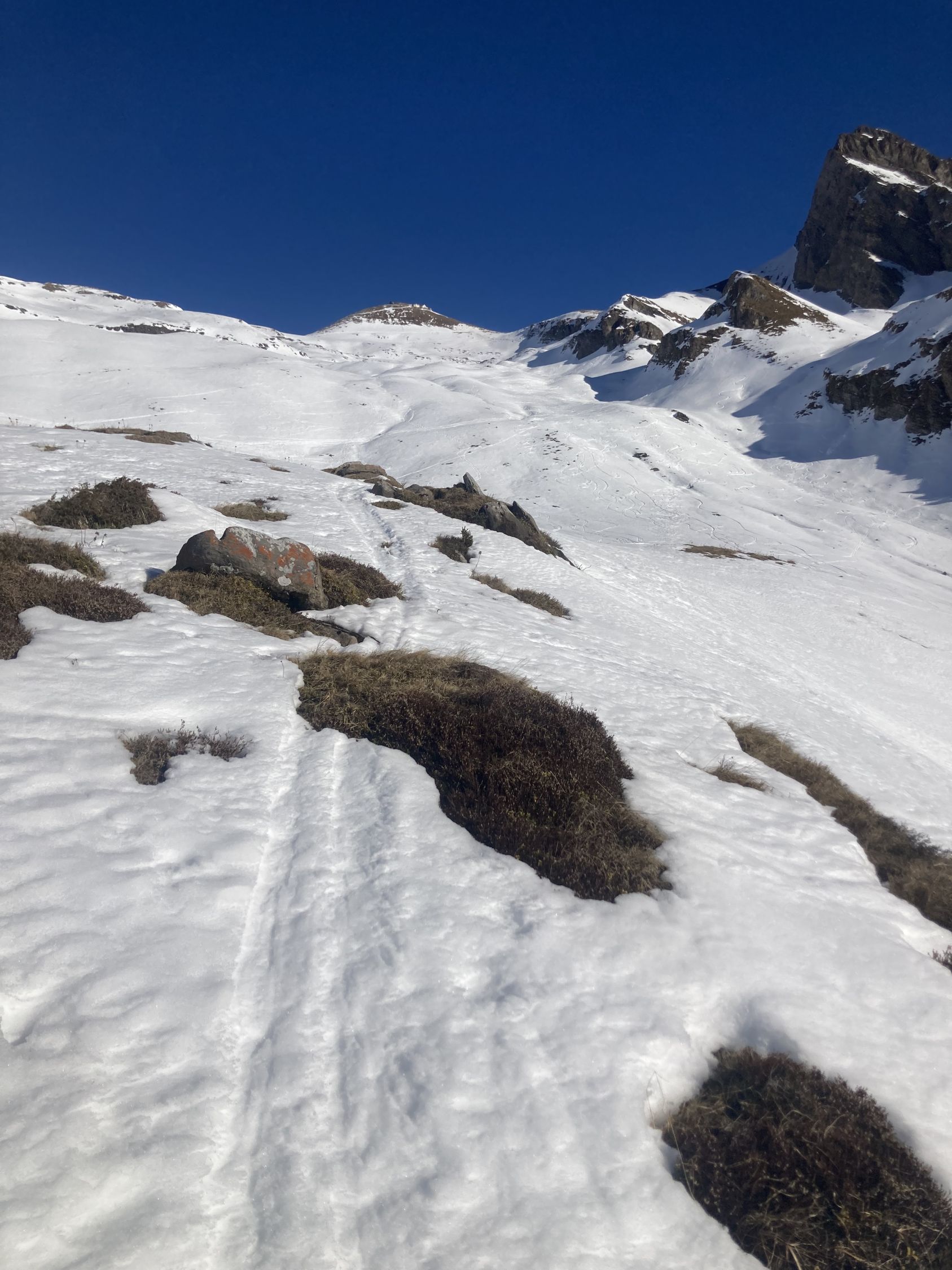 Auf der ganzen Aufstiegsroute nur einem Trailrunner & zwei Wanderern begegnet. Auf der Abfahrt dann die üblichen Schlittler & Touris etc.