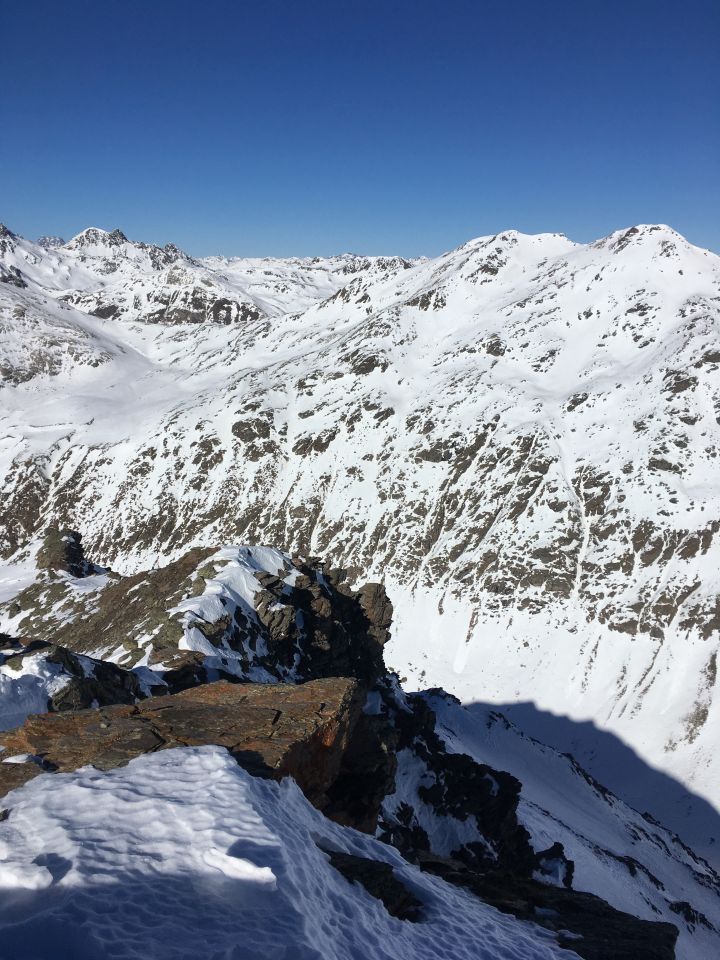 Start unterhalb Ospizio Bernina an der Bernina Passstrasse mit Traverse zur Giandas Lagalb. Aufstieg um 8.45 Uhr, minus 3 Grad, windstill. perfektes schönes Wetter. Bin im Val dal Bügliet etwas zu hoch gestiegen für die Traverse unterhalb den steilen Felsen zur Giandas Lagalb. Ganzer Aufstieg pickelhart, Harscheisen von Vorteil. In der Giandas Lagalb hat es genügend Schnee auch für Abfahrt, aber die Sonne ist noch zu wenig stark, damit es aufsulzt. Bin dann halt die schön präparierte Piste vom Gipfel runter gefahren bis Bahnhof Bernina Lagalb und mit der RhB nach Bernina Ospizio und zu Fuss auf den Parkplatz an der Berninapasstrasse. Für Direktabfahrt in der Südflanke sind die Verhältnisse für meinen Geschmack noch nicht ideal (Firnabfahrt).