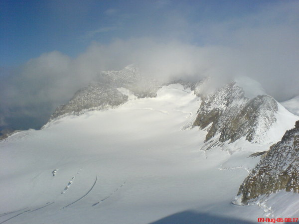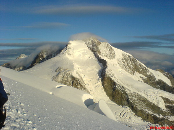 Ab ca. 3500m 20cm Neuschnee, schon weit gehend gesetzt. Felsen genügend aper. Gipfelaufstieg zum Piz Bernina sehr gute Verhältnisse.