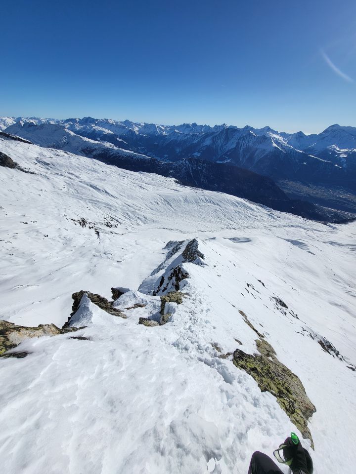 Frühlingsverhältnisse im Februar. Guter Trittschnee, haben die Skis auf 2800 deponiert.