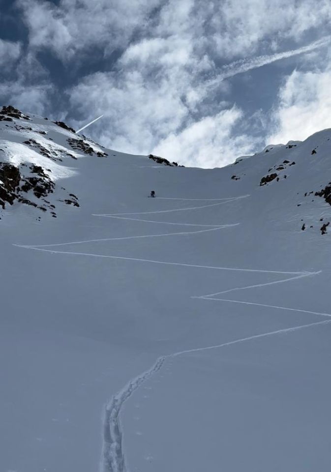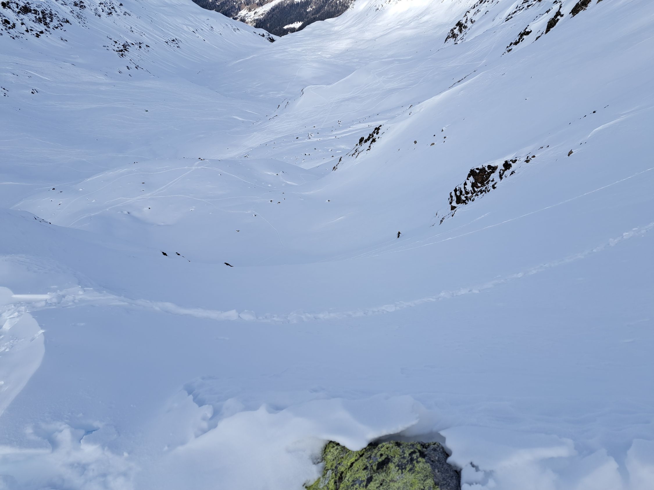 Im Rüedischtälli hat es genügend Schnee. Gipfelhand schöner Pulverschnee. Eine defensive fahrweise schadet sicherlich nicht.