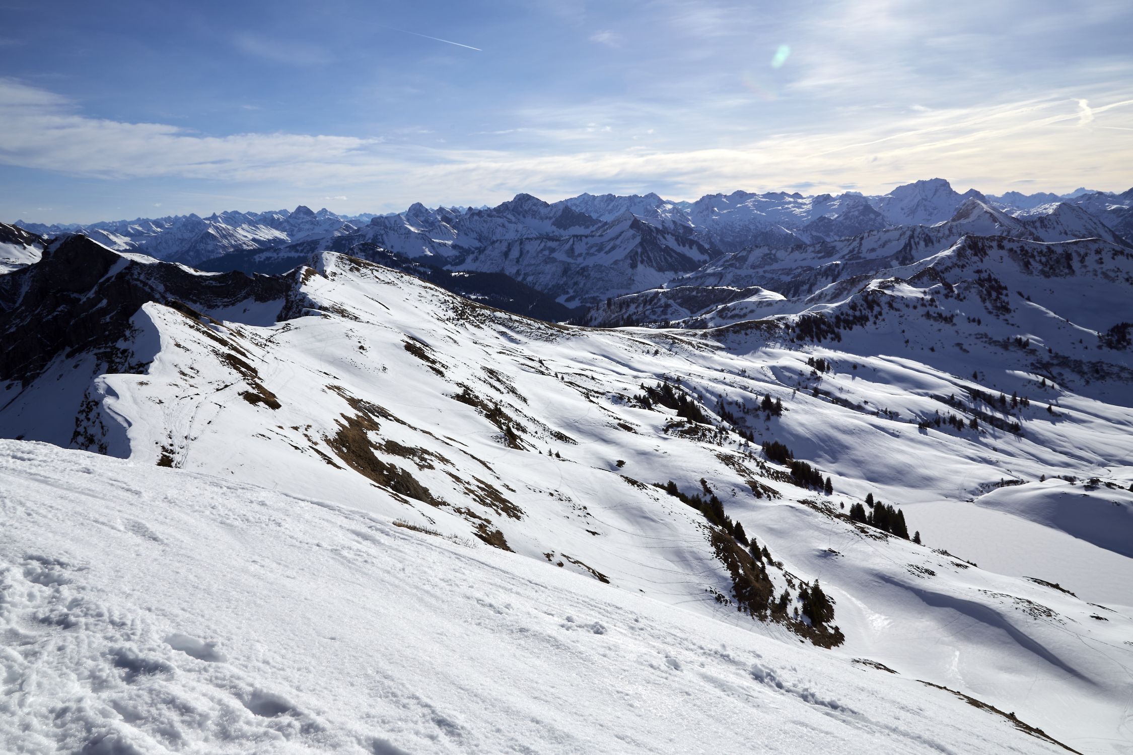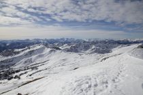 Für Skitouren liegt gerade noch genug Schnee in der Region Damüls. Heute war es ausgesprochen warm. Route: Portlahorn - Sünser Spitze - Ragazer Blanken.
