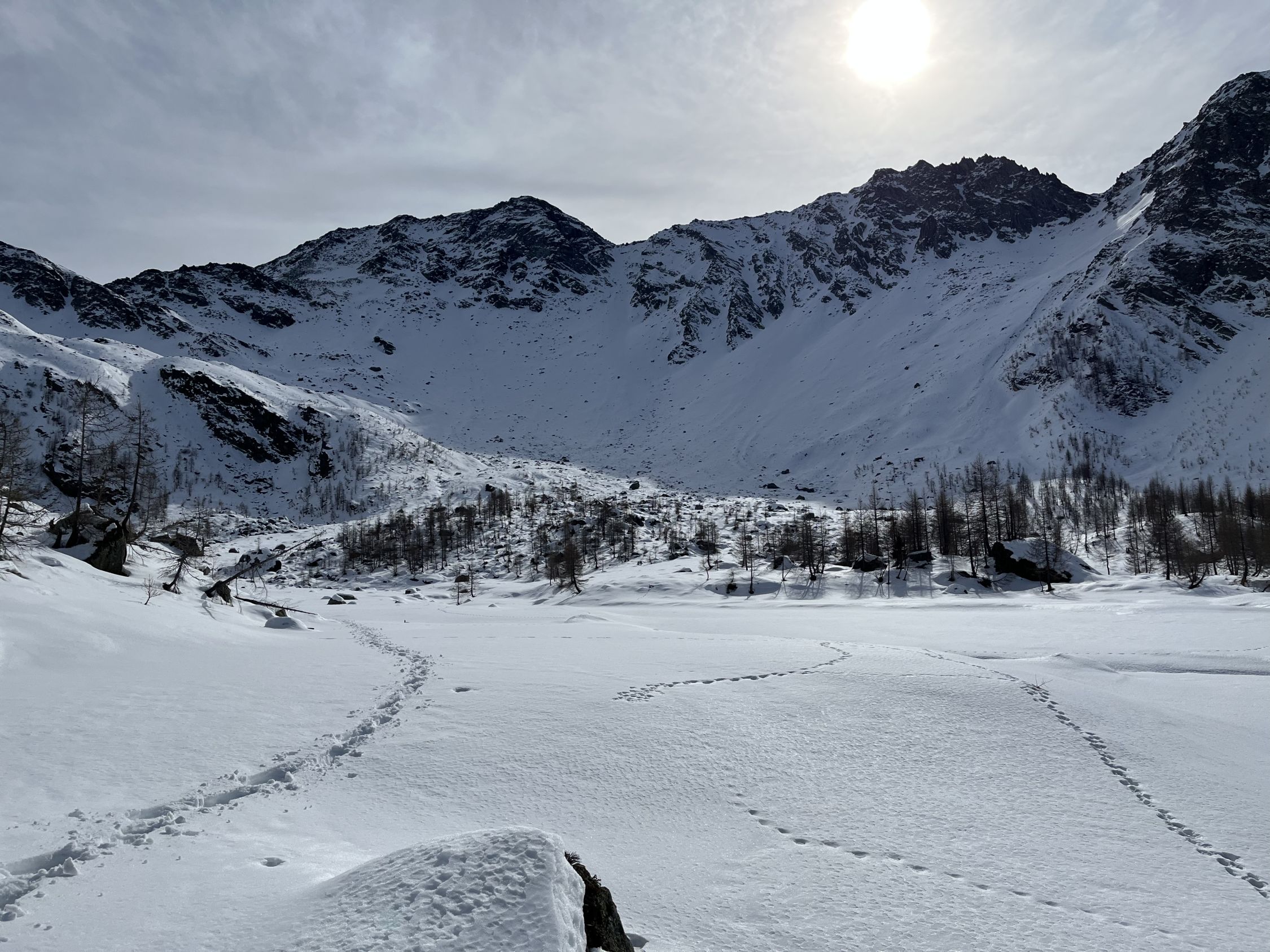 Nordcouloir: Erste 100 hm pulvrig, dann bald so hart, dass der Abstieg mit den Steigeisen erfolgen musste. Dafür in der Ebene um Alpa und gr. Stafel völlig aufgeweicht und durchbrechend: Mühsam!