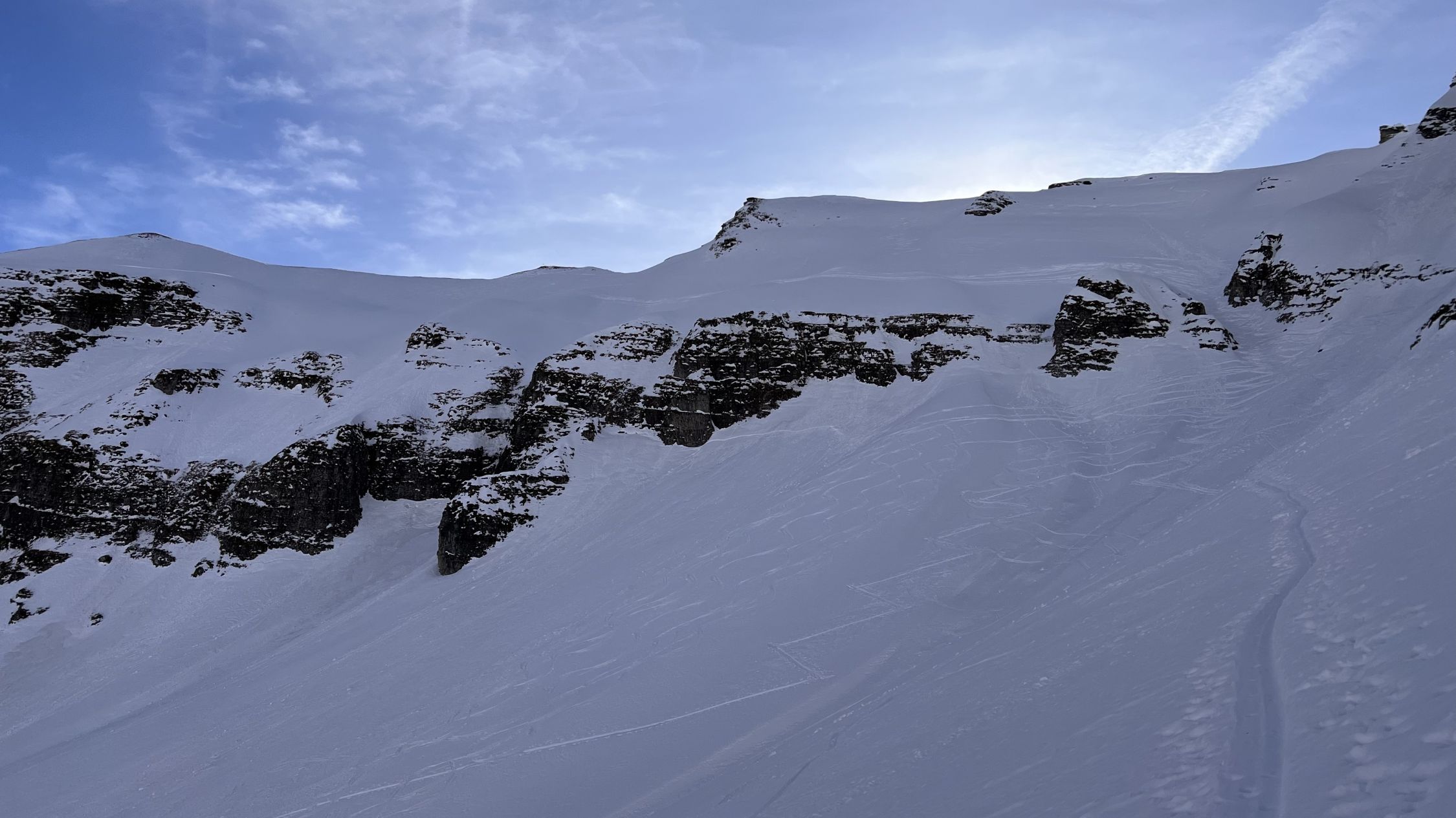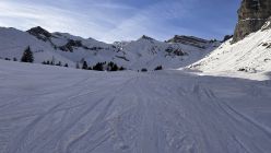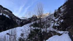 Insgesamt genügend Schnee, Strasse apert langsam aus. Zwischen 1250m und 1350m ist Tragen angesagt (rauf und runter). Passabler Schnee bis 1500m, darunter bei der Abfahrt Sumpf. Kleines Couli bei ca 2050m problemlos begehbar bzw. befahrbar.