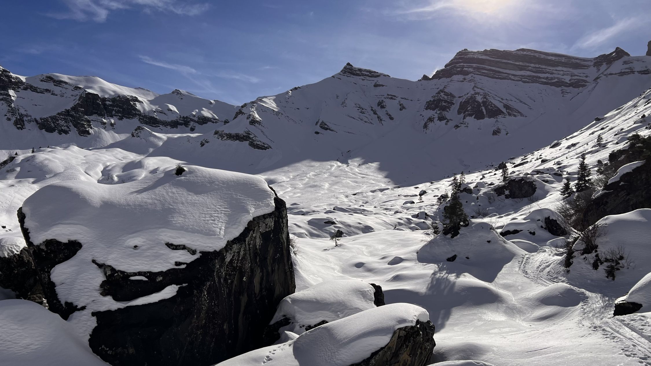Bin vom Mieserenstock bis 1750m abgefahren und dann ohne Harscheisen in einer Stunde zum Höch Hund rauf. Mit Harscheisen wäre wegen gefrorener Nassschneelawinen im Aufstiegshang schlauer gewesen. Ein paar Mutige sind vom Gipfel bzw. etwas südlich davon die Flanken Richtung Mieserenstock abgefahren. Ich bin die Aufstiegsroute runter. Ab Gratkante bis ca. 1850m war der Schnee Schrott. Dann liefs wunderbar bis 1500m runter. Darunter Sumpf.
