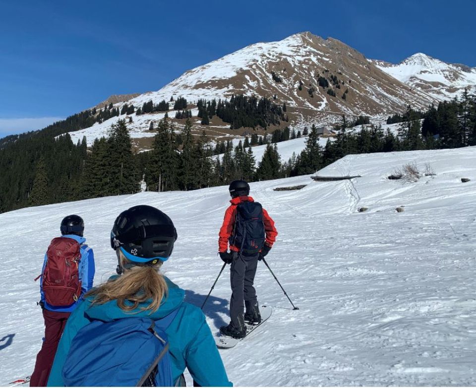 Abfahrt um 12h00 im Sulz. Nicht ganz teppichmässig, da Spuren drin, aber gute Verhältnisse. Ab Mittelberg das Strässchen zur Brücke P.1664, ging auch für den Splittboarder erstaunlich rassig,
