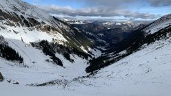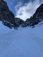 Darum umgedreht und bis ca. zur mitte wieder abgestiegen. Aus der Mitte abgefahren/abgerutscht. Leider danach alle Hänge und Expos mit Kruste. Fahrbar aber nicht schön. Drei Personen sind nach uns aufgestiegen. Ob sie hochgingen oder auch abbrachen wissen wir nicht.