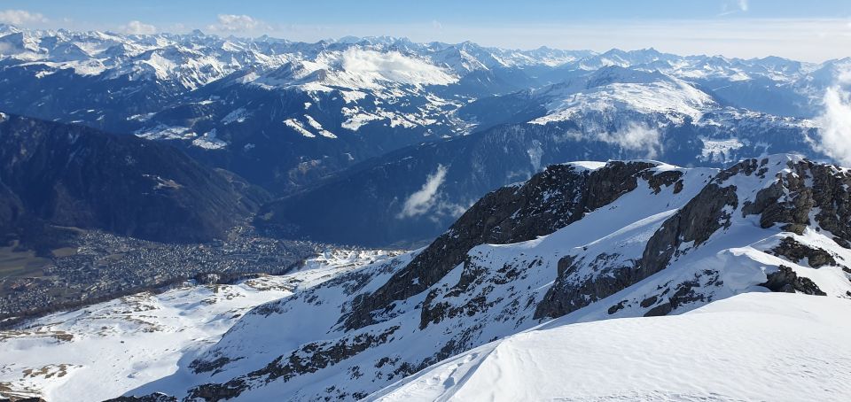Weiter über einige Schneefelder bis zur grossen Querung, dann alles ohne Schnee, ganz links über dem Felsabsatz, bis auf 2500 m. Dort Scnee-Querung nach rechts ins apere Gelände und fast ohne Schnee bis 2700 m. Von da an hat’s Schnee, aber am Grat kann man eh keine Schneeschuhe brauchen. Umgehung der letzten Kuppe vor dem Gipfel (links): 50 m heikel, steil. (WS++). Pickel, evtl. Grödel können hilfreich sein.