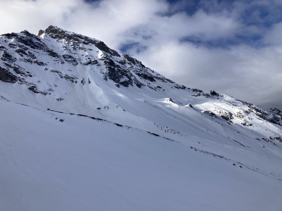 Abfahrt (über gleiche Route) auf meist harter Schneeunterlage - ähnlich einer Piste, allerdings mit ab und zu eingebauter Bruchharst-Überraschung... Glücklicherweise nur wenige Steine gesichtet.