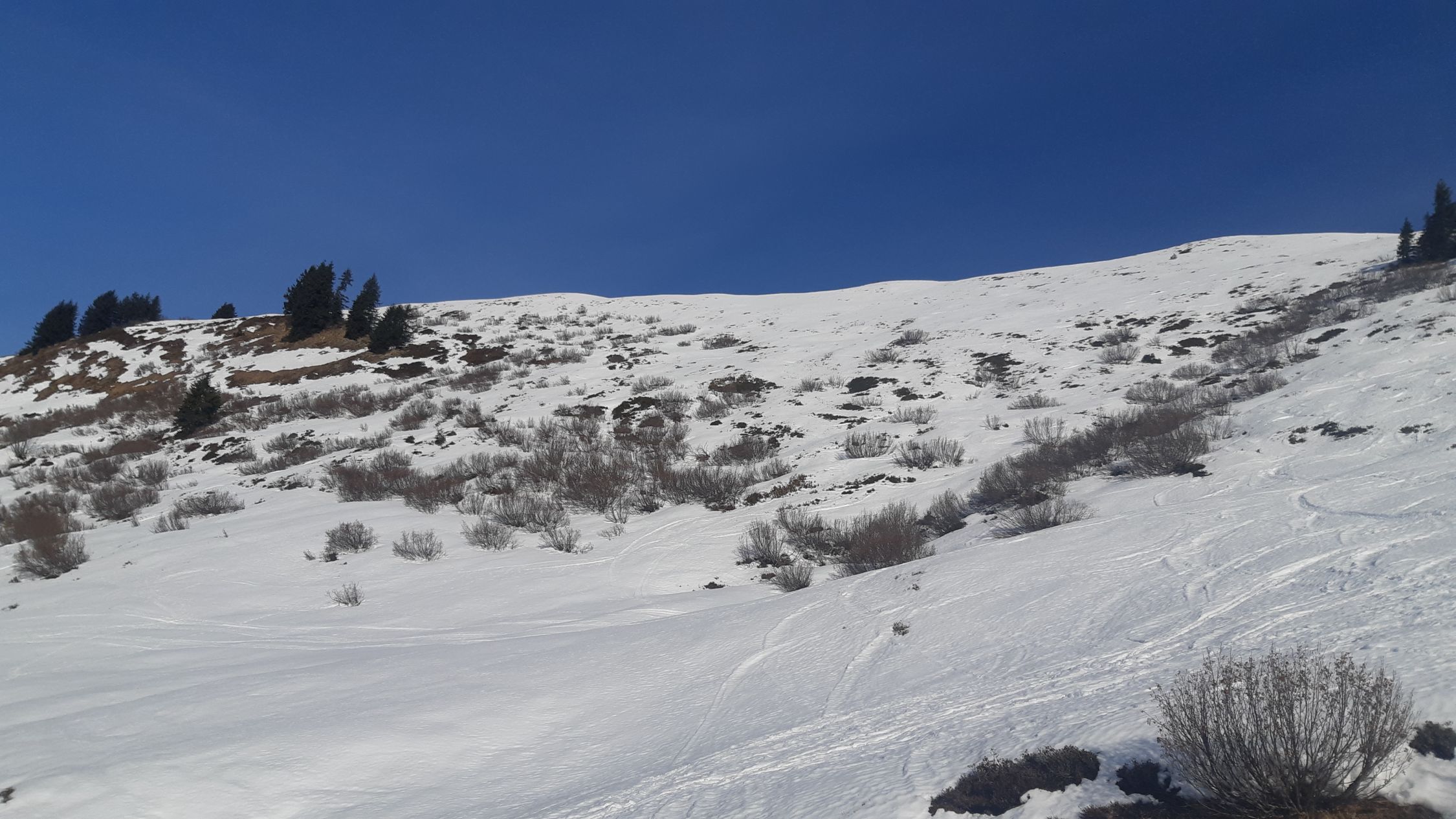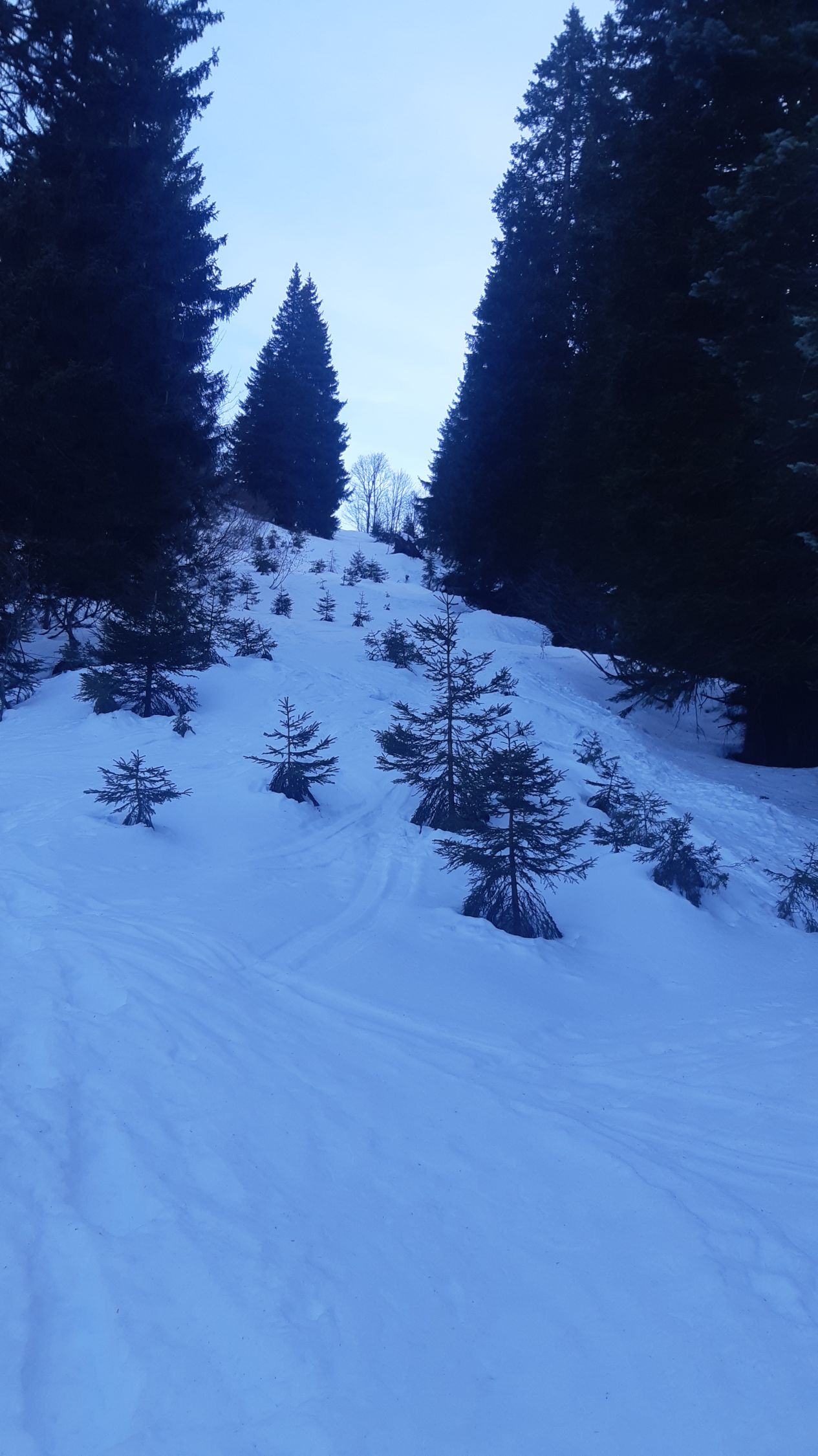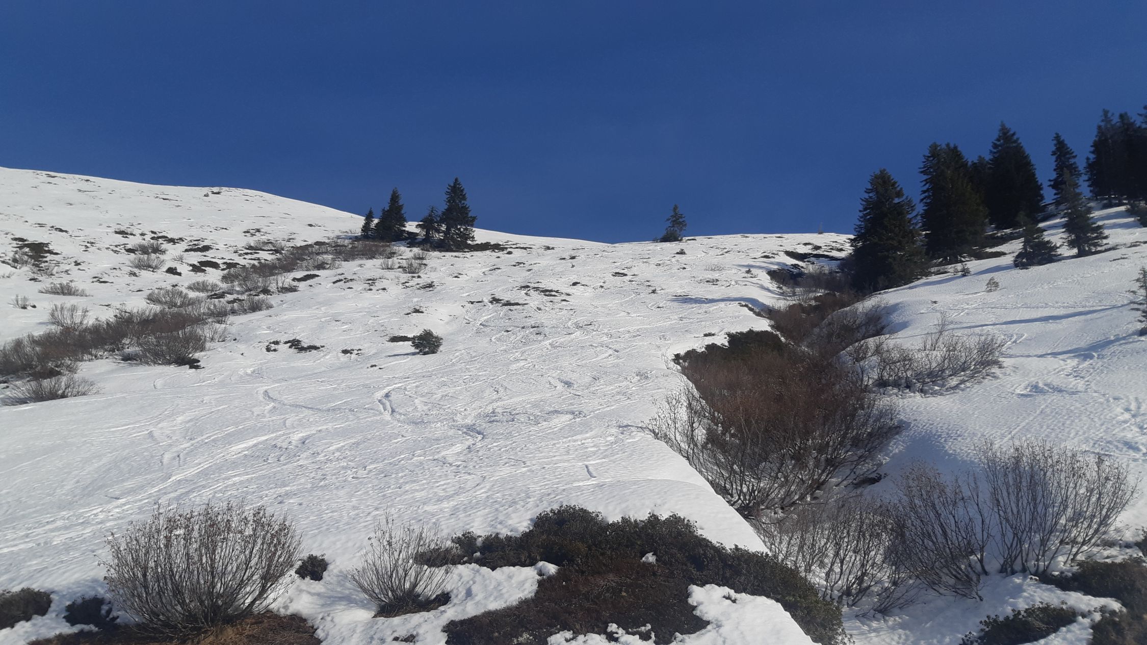 Durch den lichten Wald hat es genug Schnee. Im Aufstieg kein Problem. Abfahrt aber dann auf der Straße, weil im Wald die Schneequalität übel ist. (Bruchharsch, tiefer Sulz)