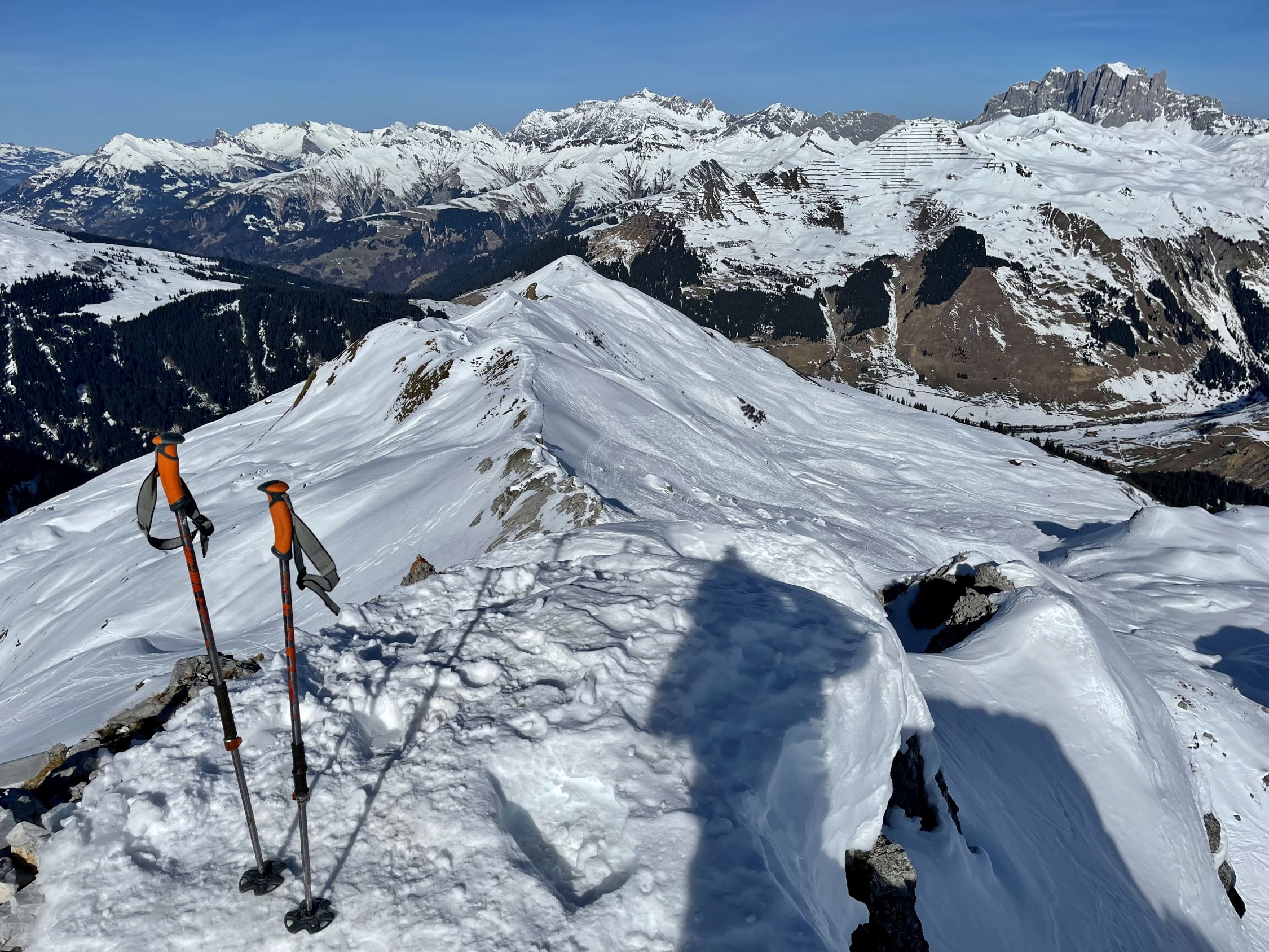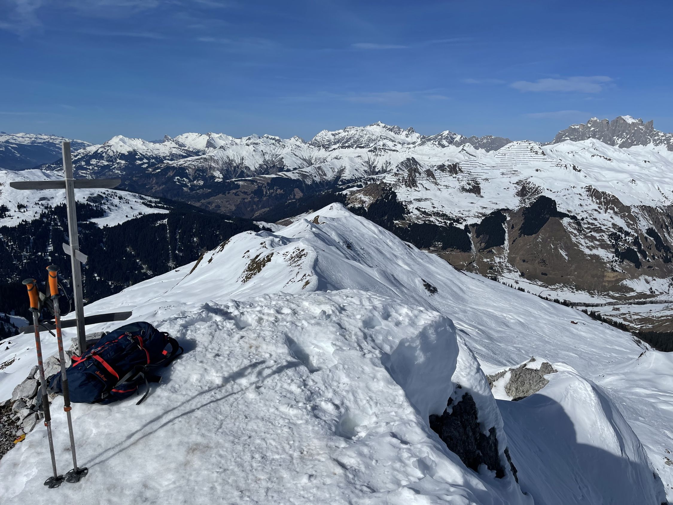 Die Tour auf das Hasenflüeli ist so wie sein Name - nett. Für das ganz große Panorama fehlen dem Gipfelchen halt so 400 hm. Der Anstieg ist kommod, landschaftlich schön, morgens hart gefroren, nachmittags dann weich.