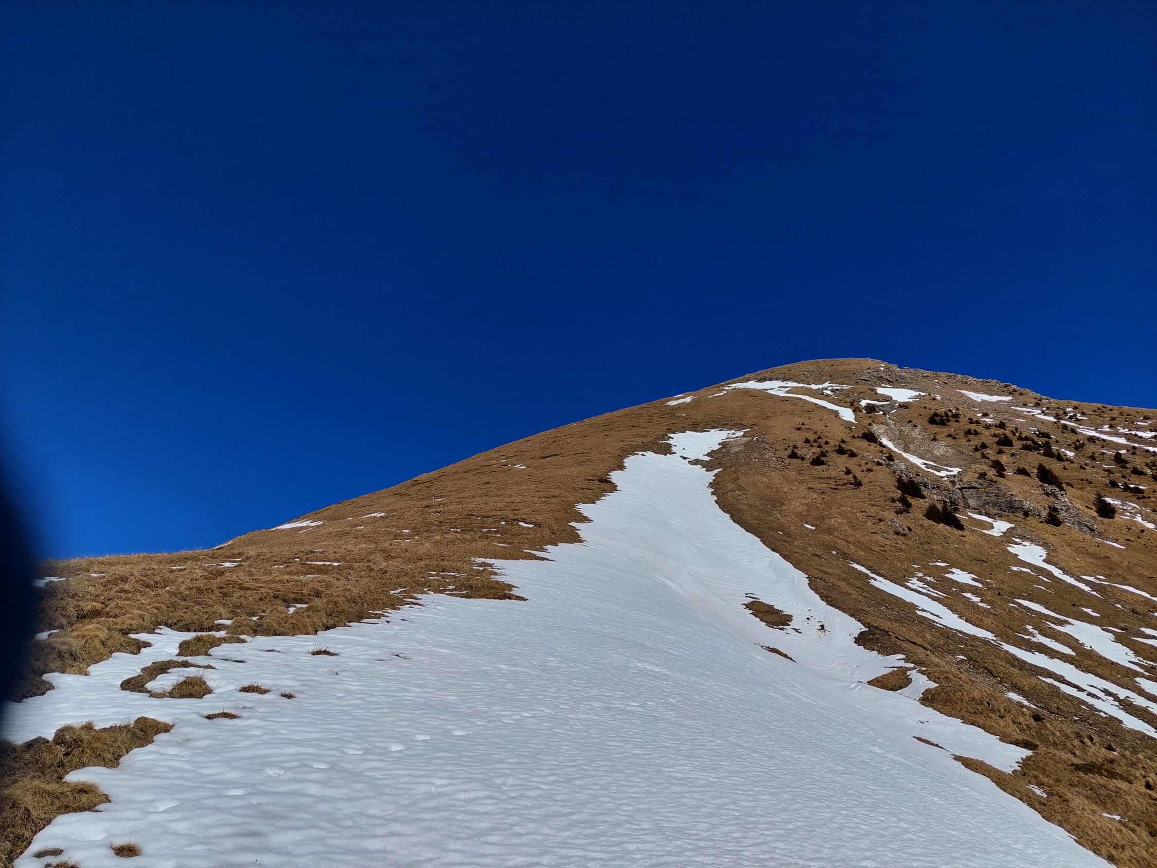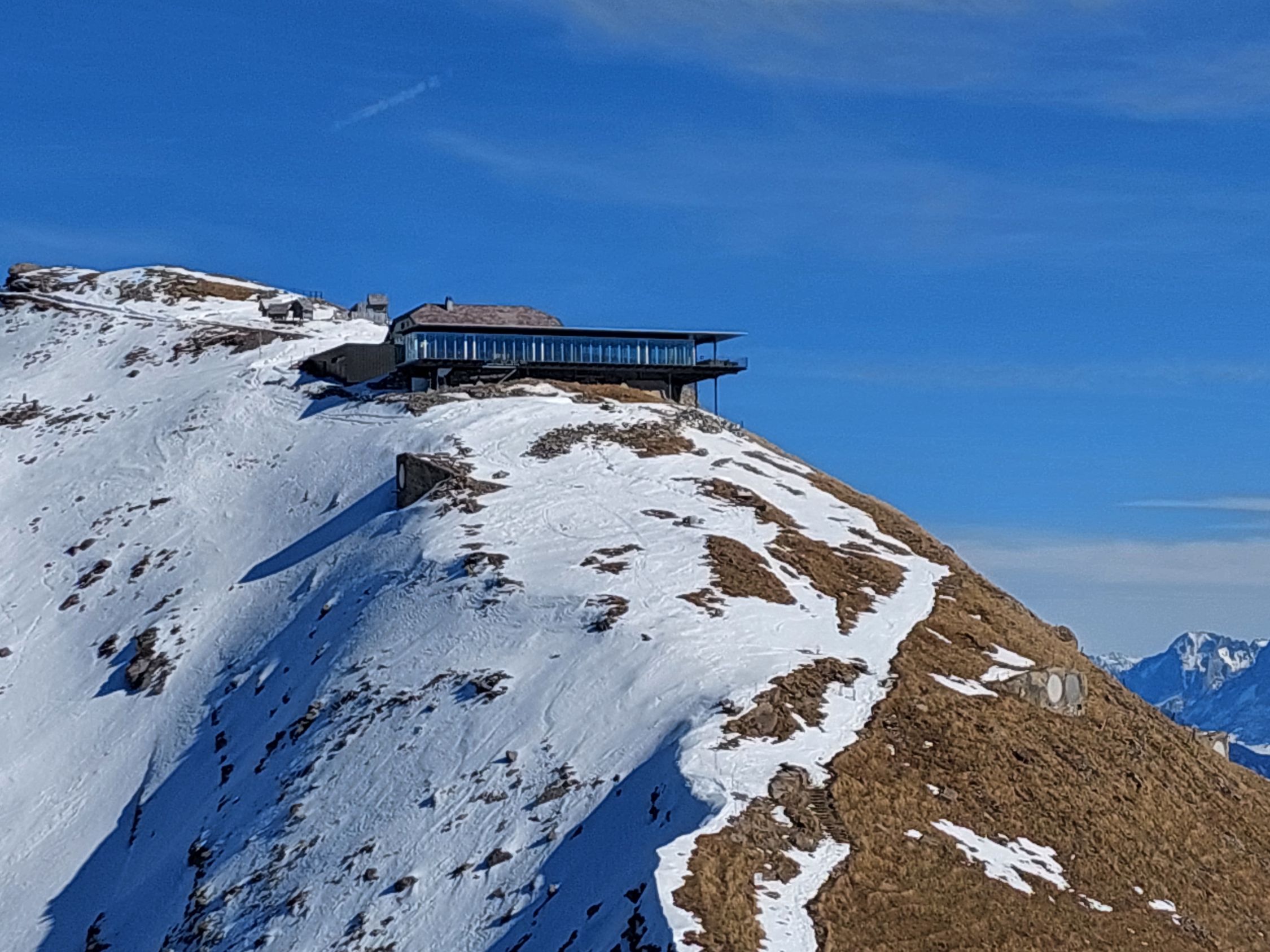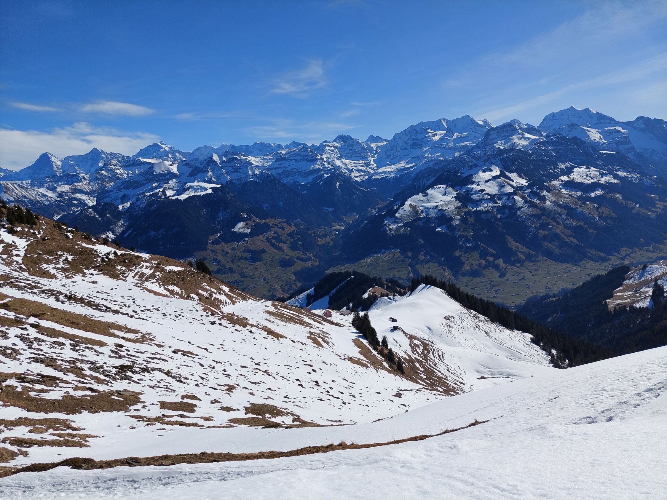Schlecht bezieht sich auf die Schneeverhältnisse, Wetter und Natur Erlebnis verdienen ein ausgezeichnet. Frühlings Temperaturen, habe ich mir gedacht, machste eine klassische Frühlingstour. Stutziweid sah auch noch ganz ok aus, gerade genug Schnee zum hochgehen, dachte weiter oben hat's dann mehr. Ist aber nicht der Fall, da oben ist fast alles grün, sogar der Gipfel Hang ist fast schneefrei! Einzig bei der Alp Niesen kann man ein paar wenige Schwünge im Sulz machen. Ansonsten viel tragen oder durchmogeln. Aber hey, ganzen Tag in der Sonne in wunderschöner Landschaft, da gibt's nix zu meckern