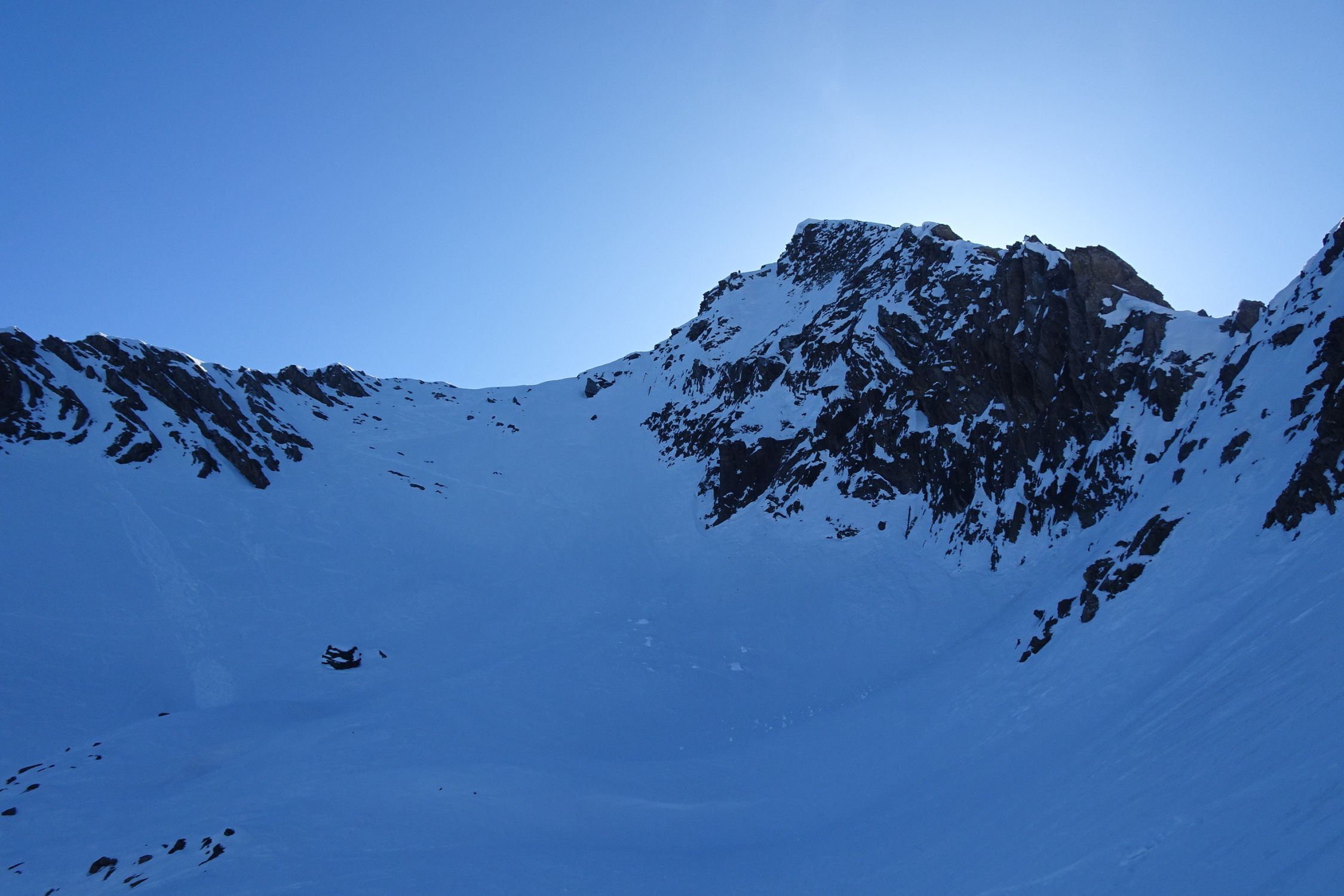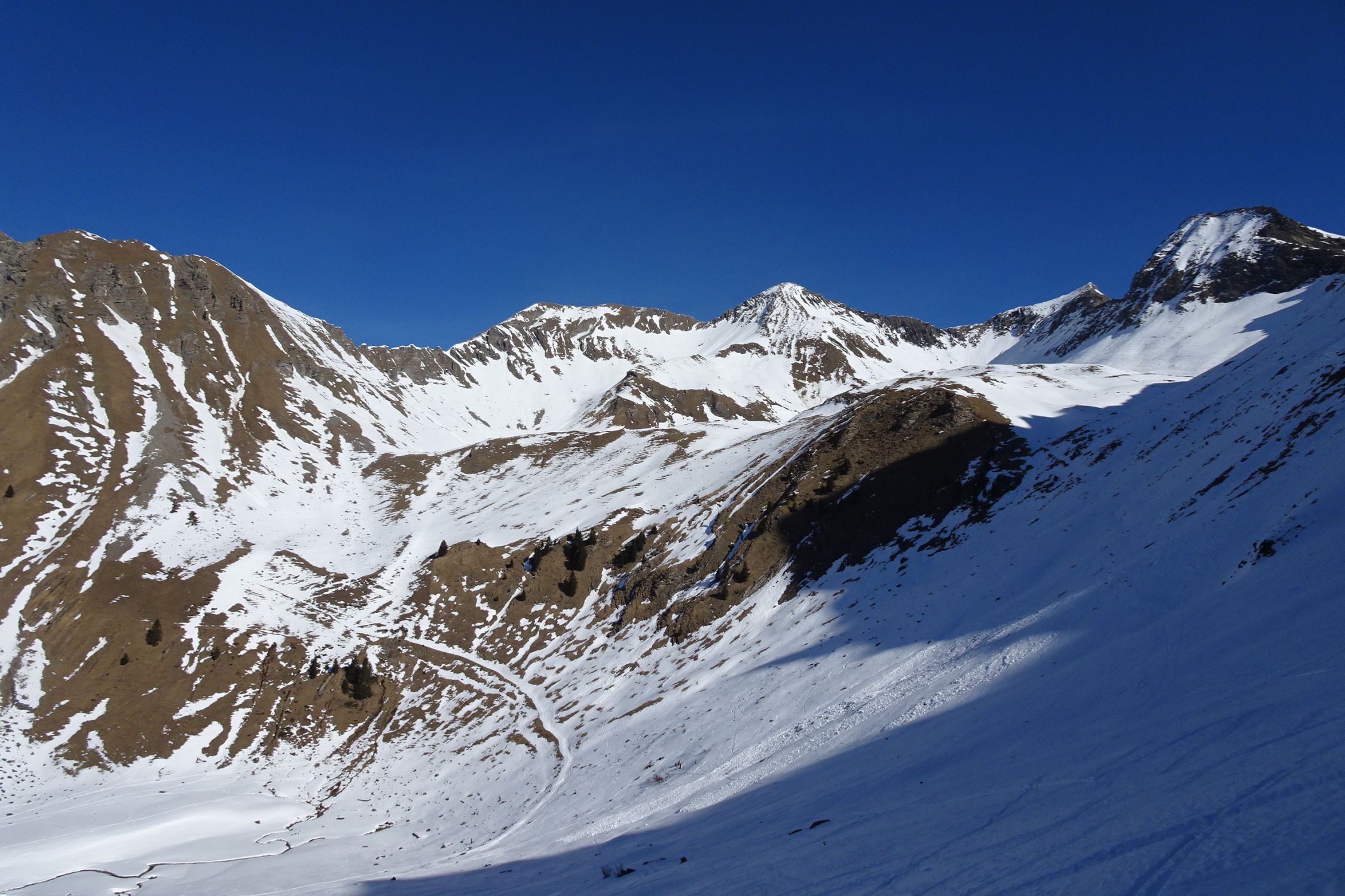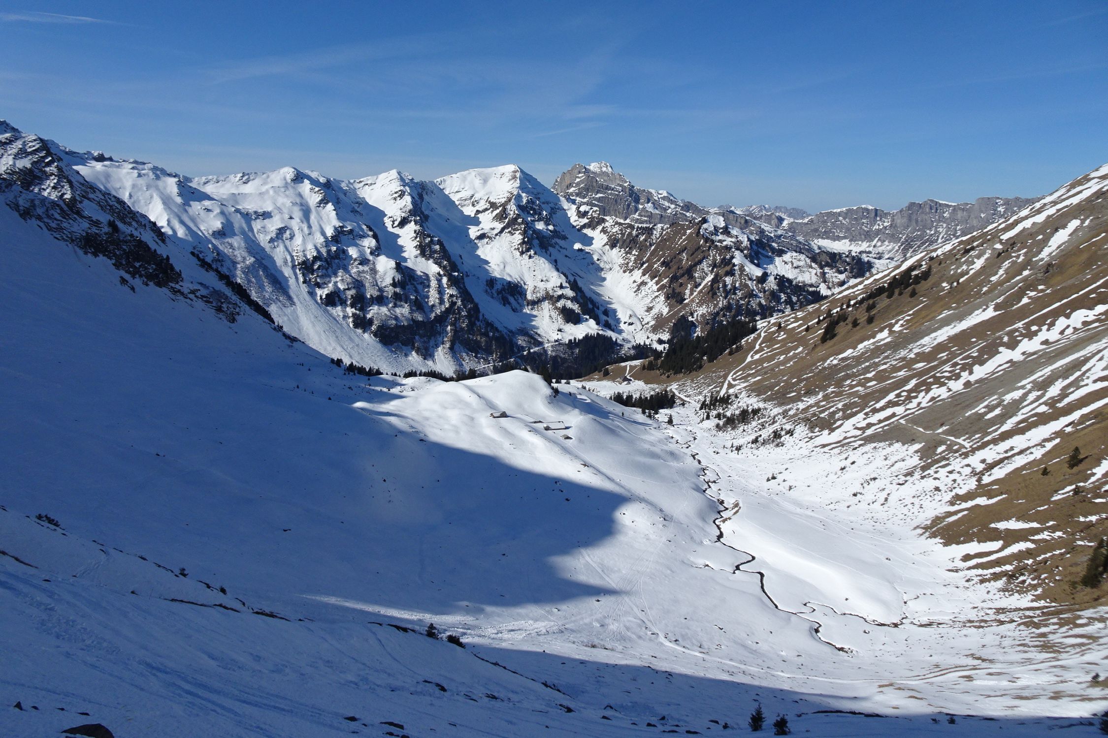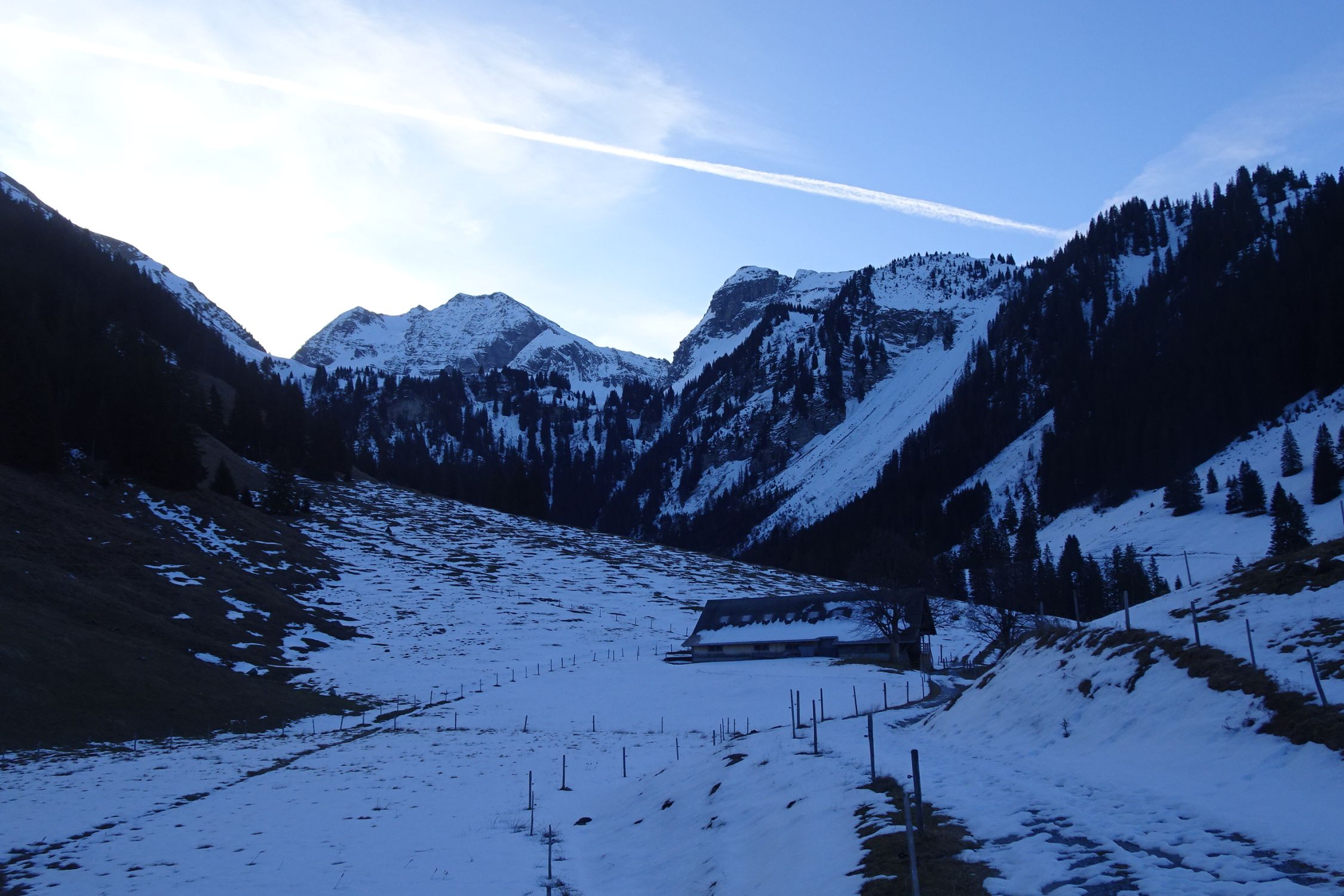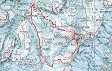 Als alpinistisch orientierter Tourengänger bin ich mit den Abfahrtsbedingungen schnell mal zufrieden, für ein "passabel" reicht es fast immer. Aber heute kann ich beim besten Willen nur ein "machbar" geben. Zuoberst bei Abfahrt um ca. 11:00 bereits angesulzt, aber damit war's bald vorbei. Dann bis ganz unten hart, völlig zerfahren, Lawinenkegel - pfui! Länger warten konnte und wollte ich nicht, weil ich zur Arbeit musste. Ab Vordere Fildrich konnte ich noch einen guten Kilometer bequem dem Strassenrand entlang fahren, anschliessend zu Fuss zurück zum Ausgangspunkt (30min).