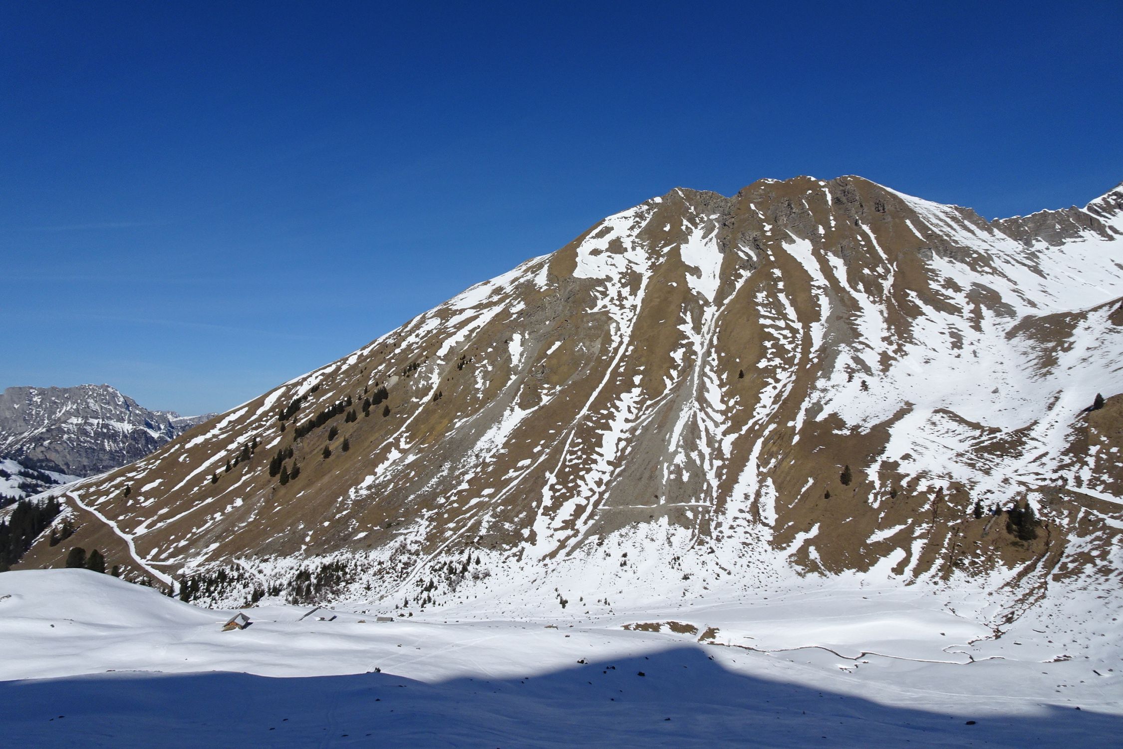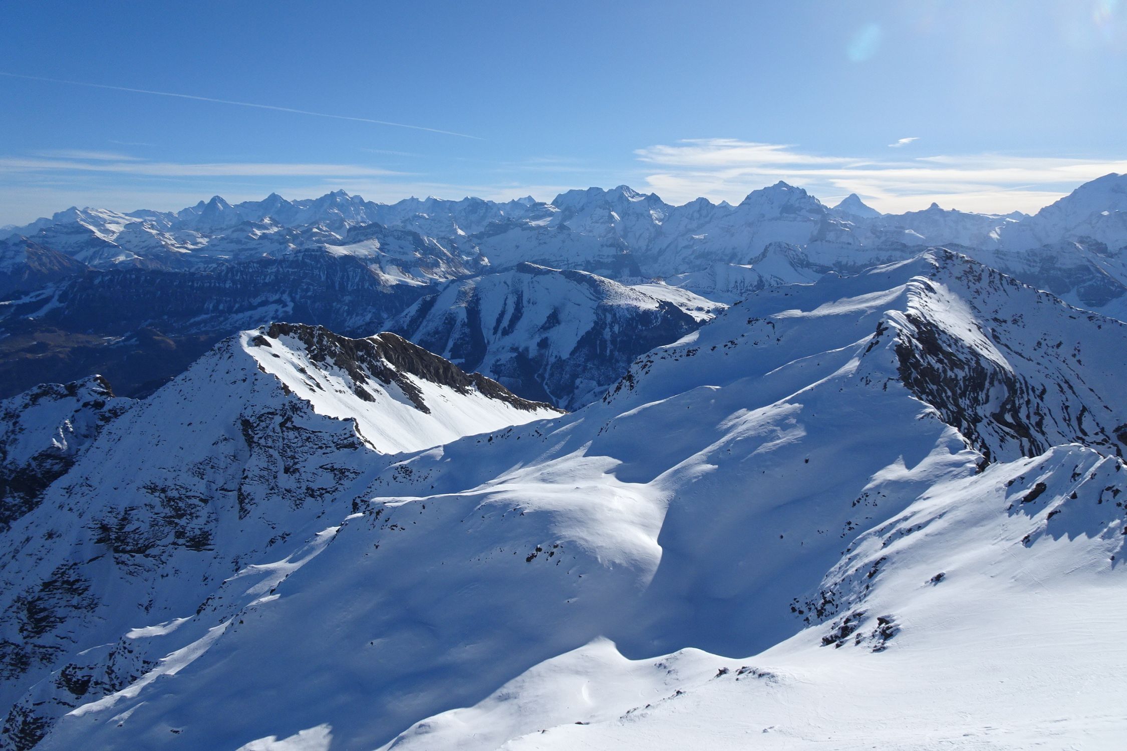 Als ich letzte Woche das Cheibenhorn besuchte und in die mächtige Nordflanke der Männliflue blickte, war sofort klar: mein nächstes Tourenziel! Die Schattigi Schibe habe ich auch mitgenommen, das sind ca. 30min extra. Die Idee mit der Überschreitung ist mir spontan en route gekommen, weil ich zeitlich gut dran und guter Laune war. So konnte mich die abschliessende Wanderung durchs Chiley auswärts nicht schrecken.
