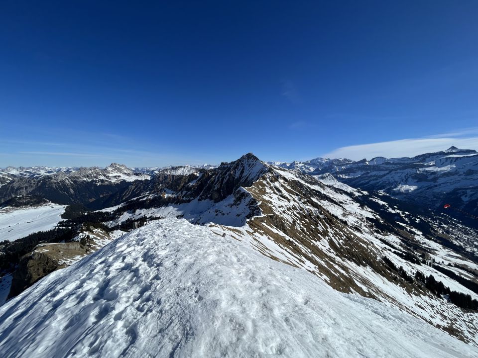 Start auf dem Col des Mosses. Aufstieg via Lac Lioson und dann in den Sattel zum Pkt. 2079 und weiter auf den Gipfel. Es hat wenig Schnee und die Route ist sehr verfahren. Unterhalb vom Gipfel ist die Wechte gut zu überschreiten. Es hat eine gut gelegte Spur, welche jedoch bereits verfahren ist. Harscheisen sind hilfreich.