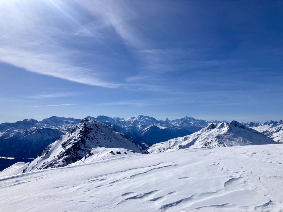Abfahrt: Sehr schwerer und nasser Schnee wie ich ihn noch selten erlebt habe in dieser Jahreszeit. Gewisse Südhänge im Tagesverlauf immer heikler, teils tief mit dem Board eingesunken. Trotzdem eine schöne Tour, etwas ab vom Rummel und mit gigantischem Rundblick, welcher einem belohnt.
