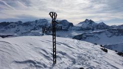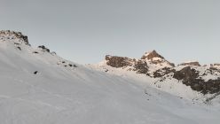 Nach wenigen Minuten heute schon beim Tourenstart, am 5.45 Uhr gings los beim Schwandbodengatter, weiter über Rinderplangg zur Ruosalp, beim Schnäbeli angekommen dann die erste Schlüsselstelle , kurzer Fussaufstieg mit Steigeisen, schon bald kamen die ersten Pulverschnee Passagen, die Querung war etwas mühsam in Richtung Alpler Tor, beim Einstieg angekommen steil weiter zum Y , wo die Ski deponiert wurden, das Couloir war leider recht hart, nicht wie die erhofften Pulverschnee Verhältnisse, es wurde immer steiler und schmäler, dann kam die Schlüsselstelle , zwei kurze mit Mixed-Passagen, beim Grat angekommen dann in wenigen Minuten beim Gipfel, mit toller Aussicht zu den Walliser 4000er, die Ski montiert , zuerst noch bei hart Schnee durchs Couloir, weiter über noch Pulverschnee in Richtung Alplertunnel, weiter über Waldi zur Rinderplangg, die total schlecht zum Abfahren war.