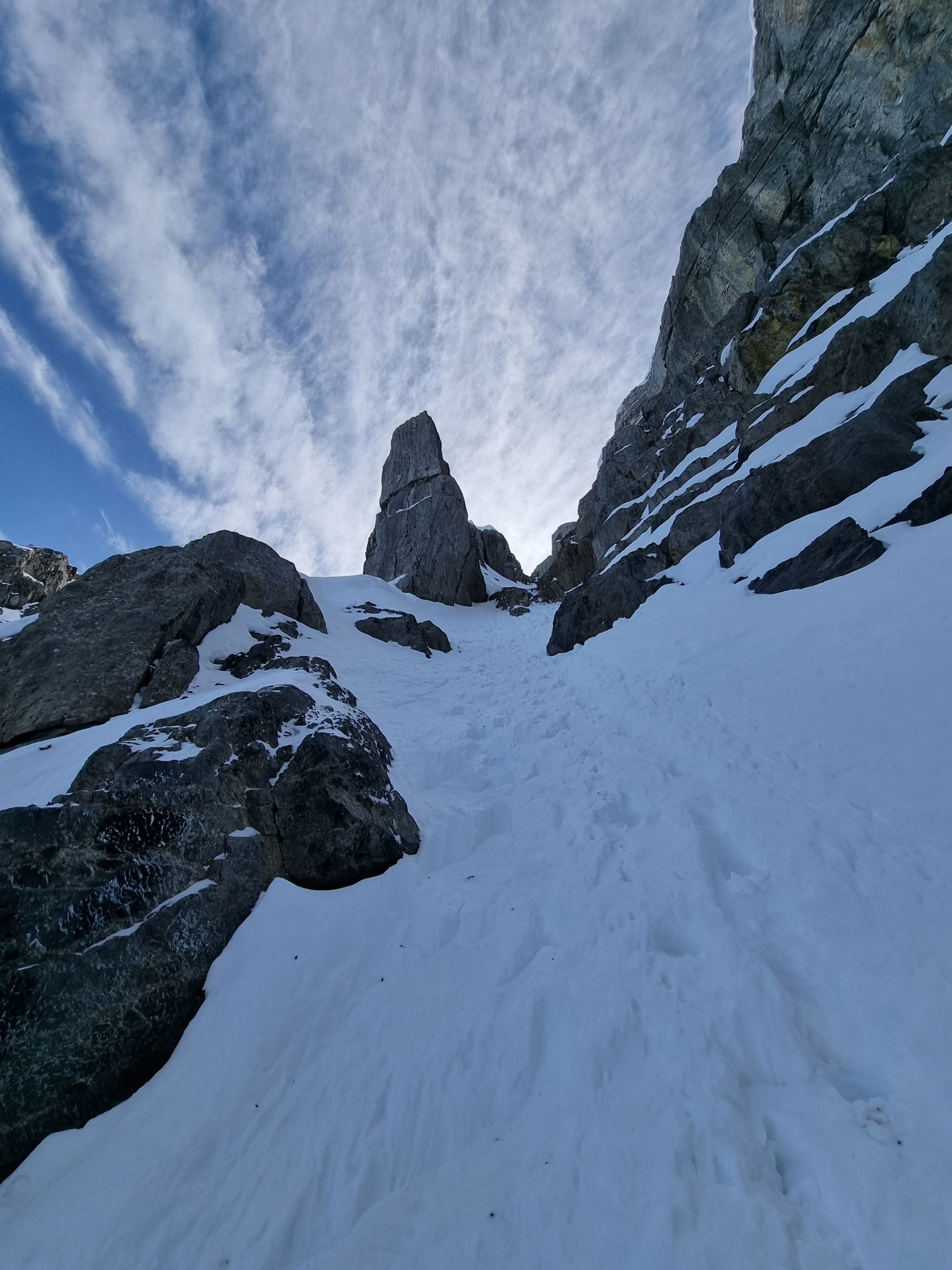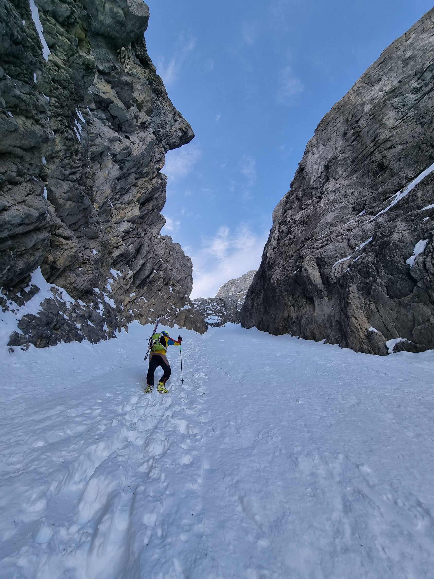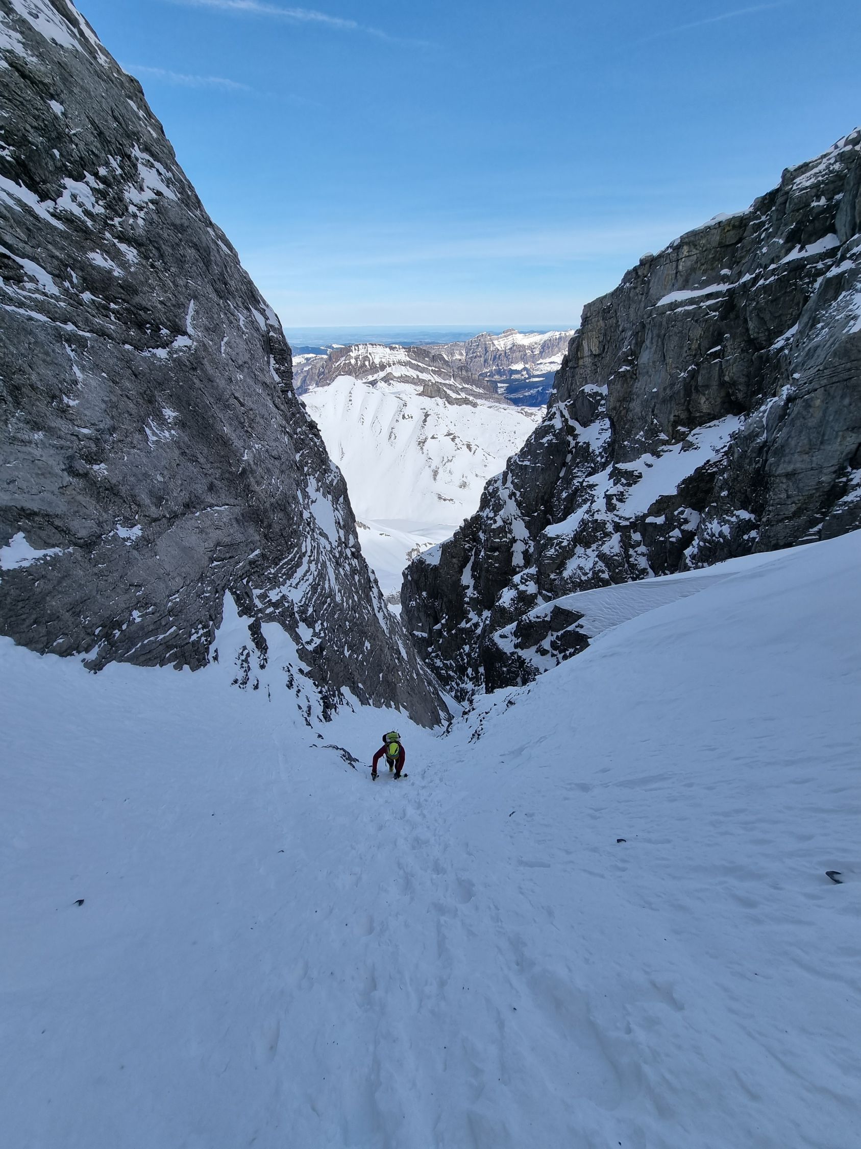 Es braucht immer wieder eine gewisse überwindung für so Touren , vor 3 Jahren kam die Gipfelwechte ins Couloir, irgendwann ist das Glück aufgebraucht.