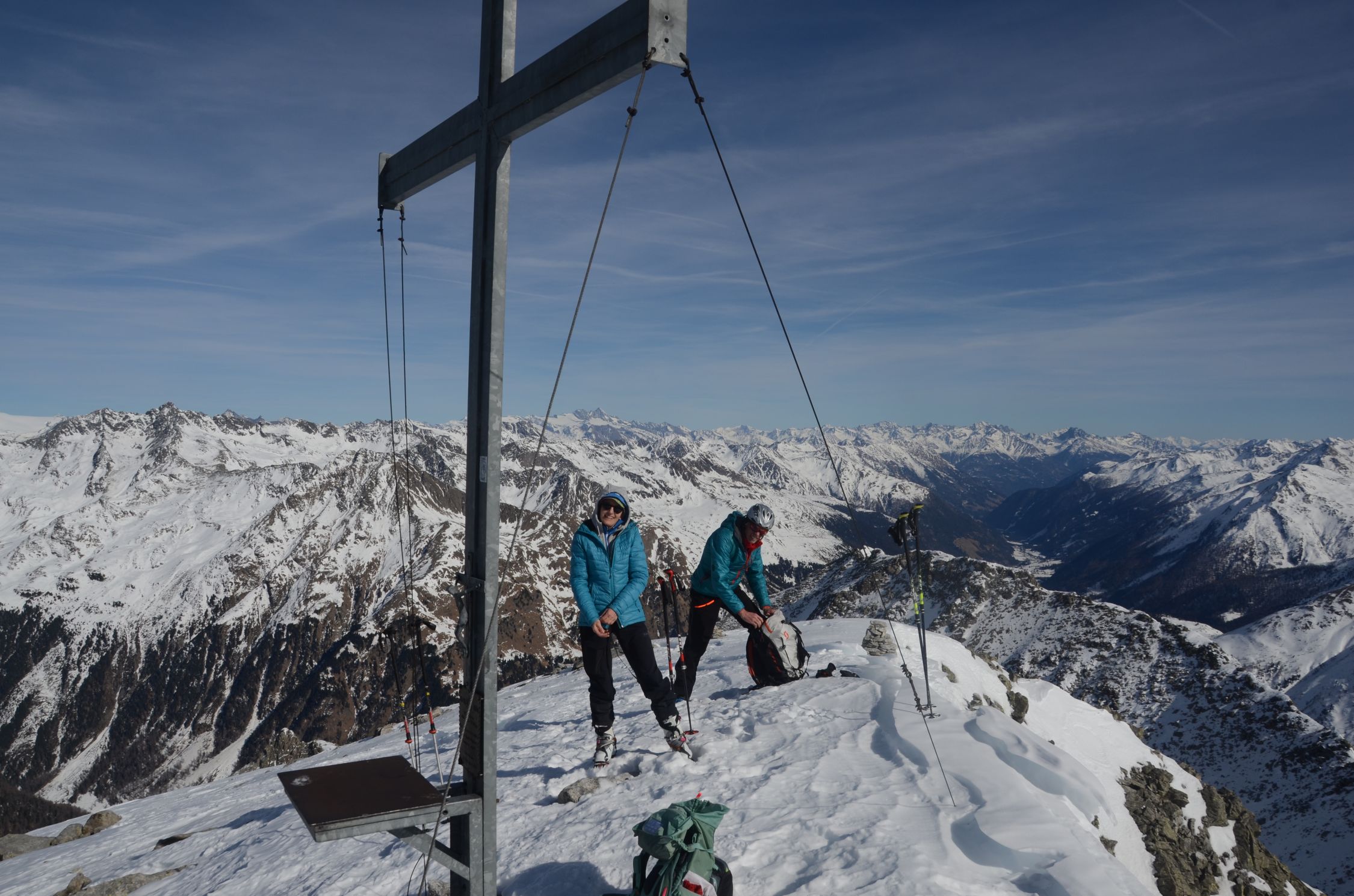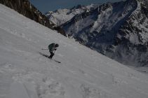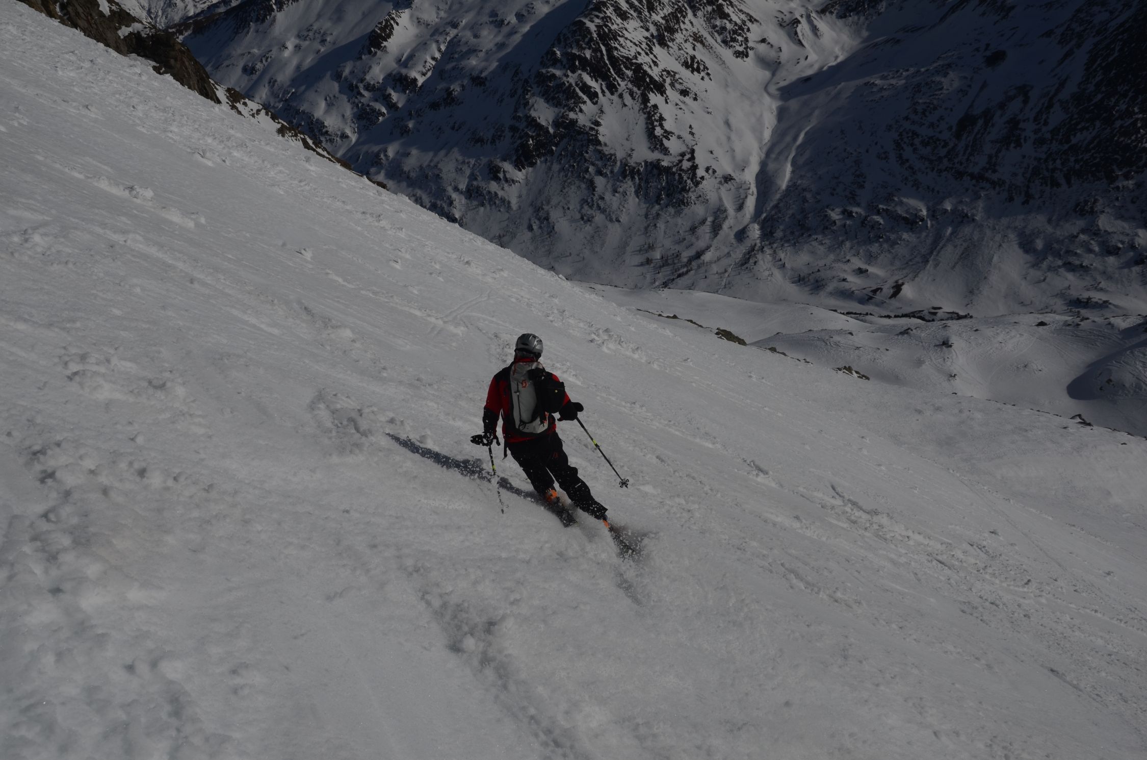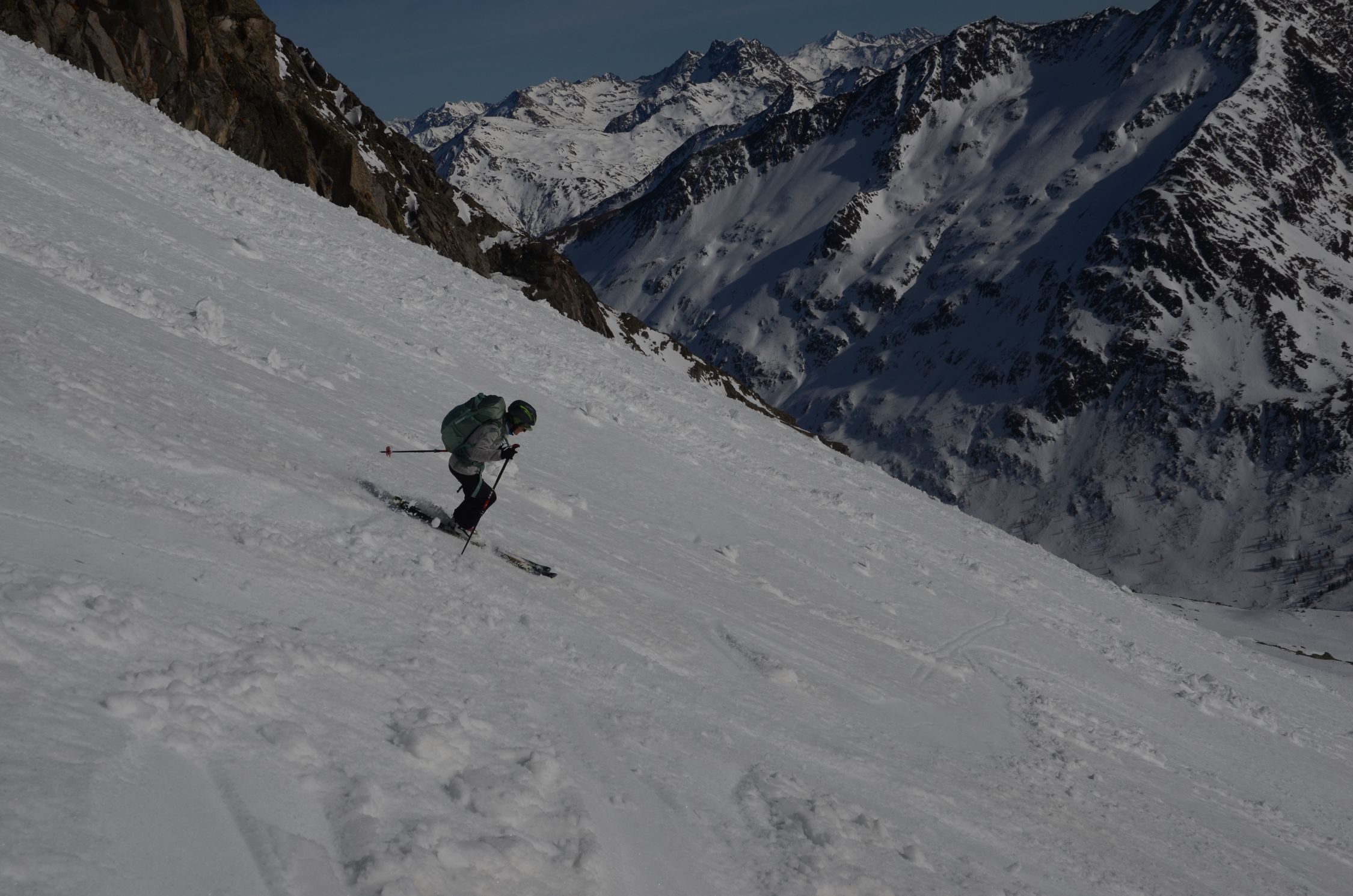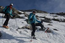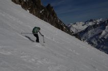 Gipelhang ist ohne Schi zu gehen und sehr hart und eisig. Abfahrt von der Jägerscharte war schöner Firn, weiter unter schon recht aufgeweicht.