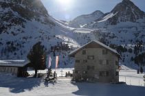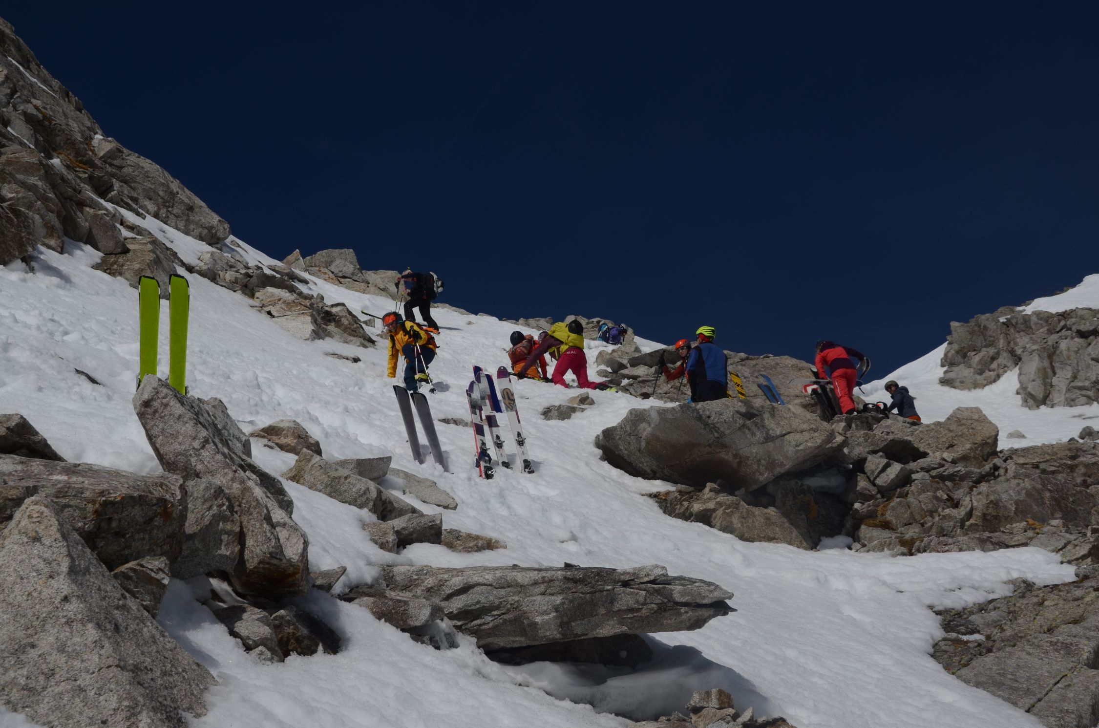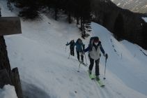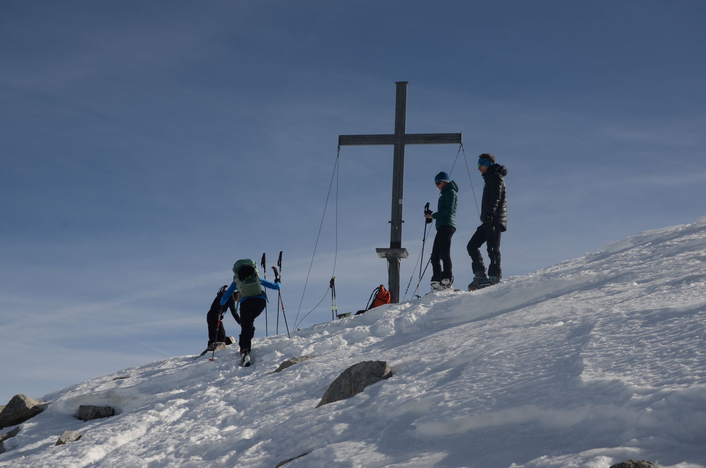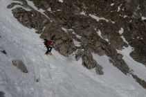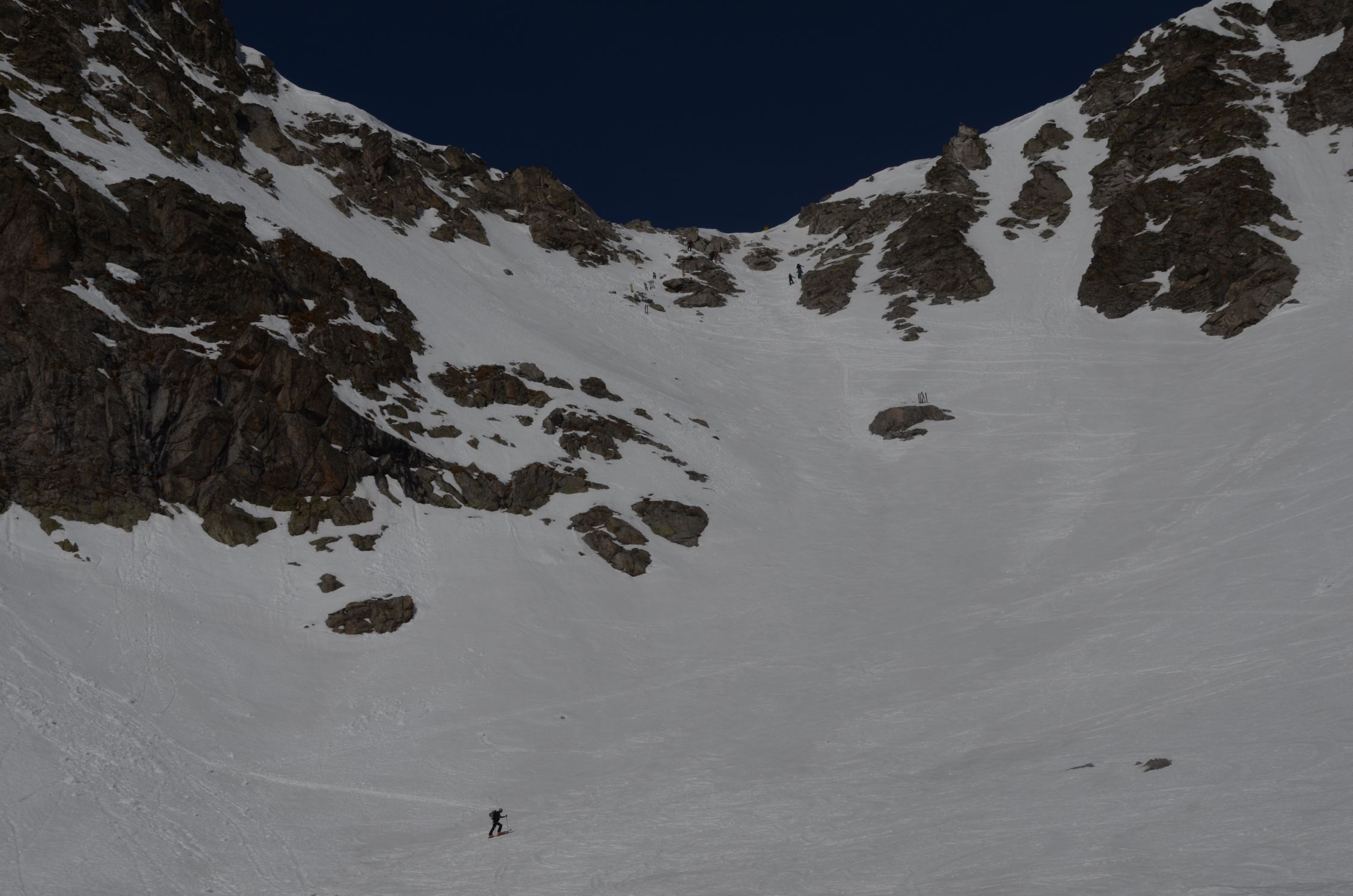 Gipelhang ist ohne Schi zu gehen und sehr hart und eisig. Abfahrt von der Jägerscharte war schöner Firn, weiter unter schon recht aufgeweicht.