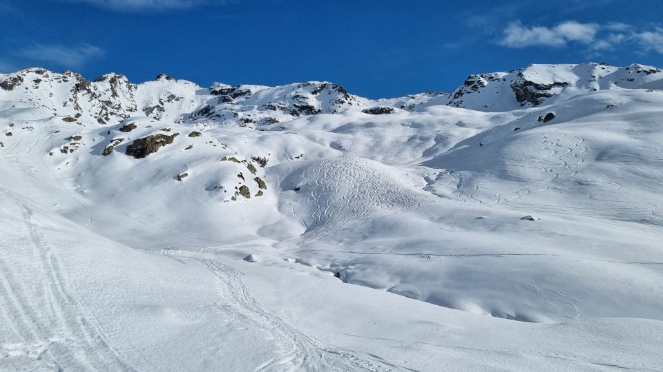 Das einzige was stört sind die vielen Schneeschuhspuren bis zur Zollwachhütte.... da der Schnee hart ist macht das die Abfahrt ziemlich ruppig. Ab hütte pulver, man findet noch freie Stellen......auch der letzte steilhang hat genügend Schnee, Harte, pulvrige Aufstiegspur....