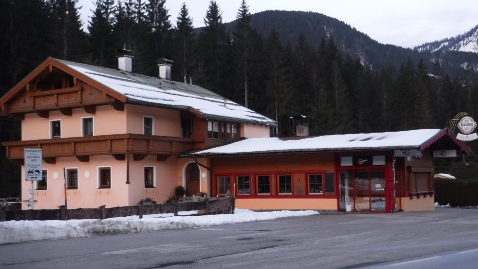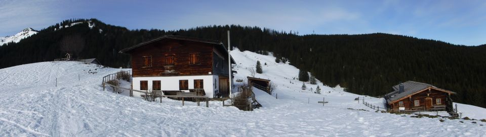 Tourenbeginn um 08:15 Uhr bei 0°C und Schleierwolken. Am Nachmittag klarte es dann auf und wurde warm. Schneeschuhe im Hohlweg unterhalb der Falkenmoosalm angeschnallt , bzw. auf dem Rückweg abgeschnallt.