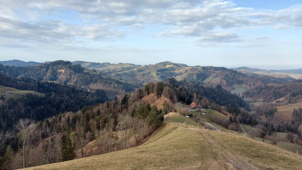 Nach stärkerer Bewölkung am Morgen wurde es ein unerwartet sonniger Tag. Beim Start war es noch kühl bei 3 Grad, später mild. Auf dem Schnebelhorn allerdings mäßiger und kühler Südwind. Die Bewölkung ist nach Osten abgezogen. Dunstig war es und die Bergsicht dadurch eingeschränkt.