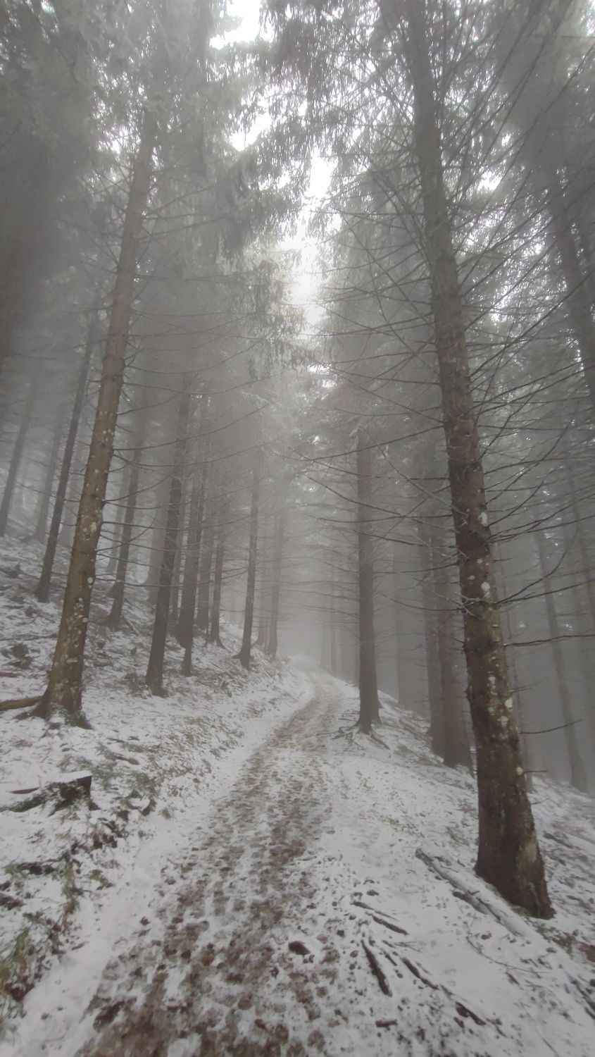 Neblig, Nieselregen, Schneegraupel, aber alles gut zu gehen. Nur noch wenig Schnee oberhalb Holderen bis Staffel