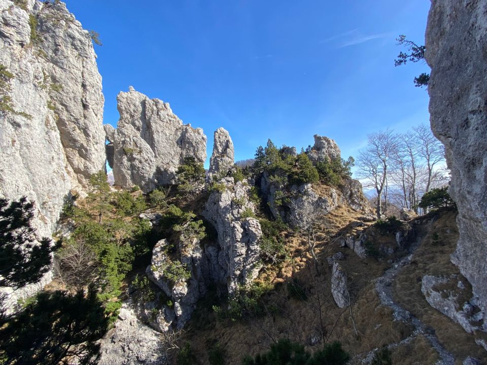 Klettergebiet Denti della Vecchia (1491m): Überschreitung NE - SW