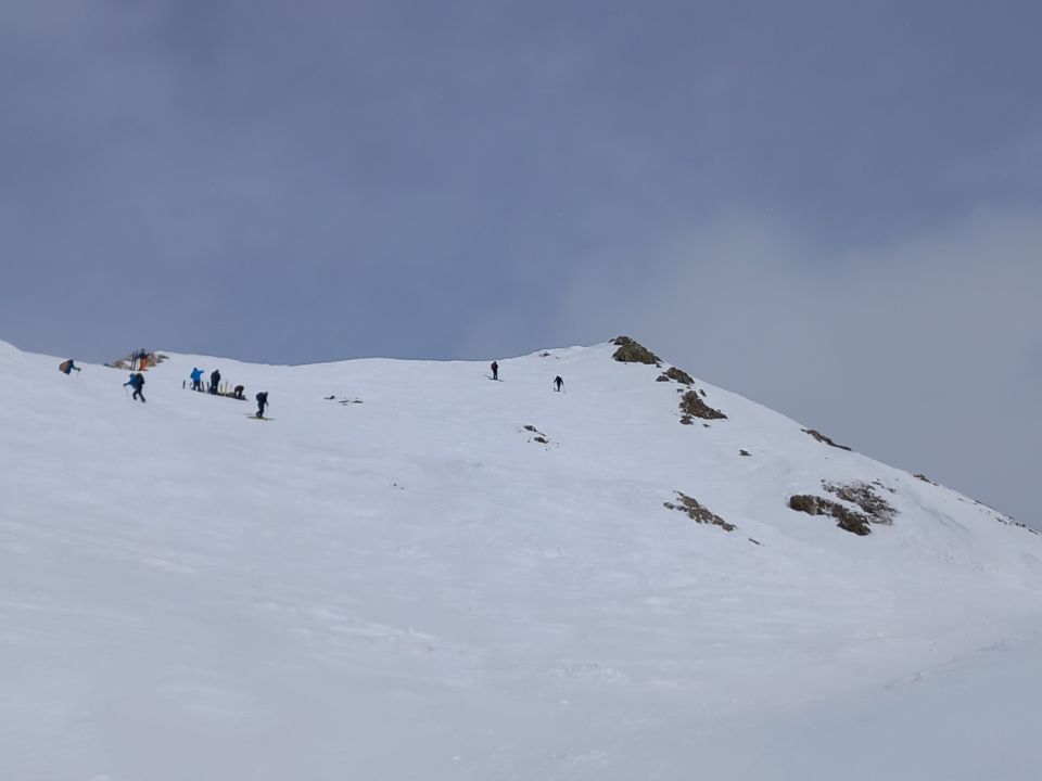 Heute für mich und die Meisten Skidepot unten am Gipfelgrat. Der Gipfelhang mit Ski war heute wenig einladend, zerfahren und hart.