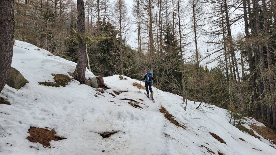 Die Abfahrt ab der Berardhütte wird ohne Schnee und mit Erwärmung deutlich schwieriger werden und man muss sich auf längere Tragepassagen einstellen.