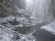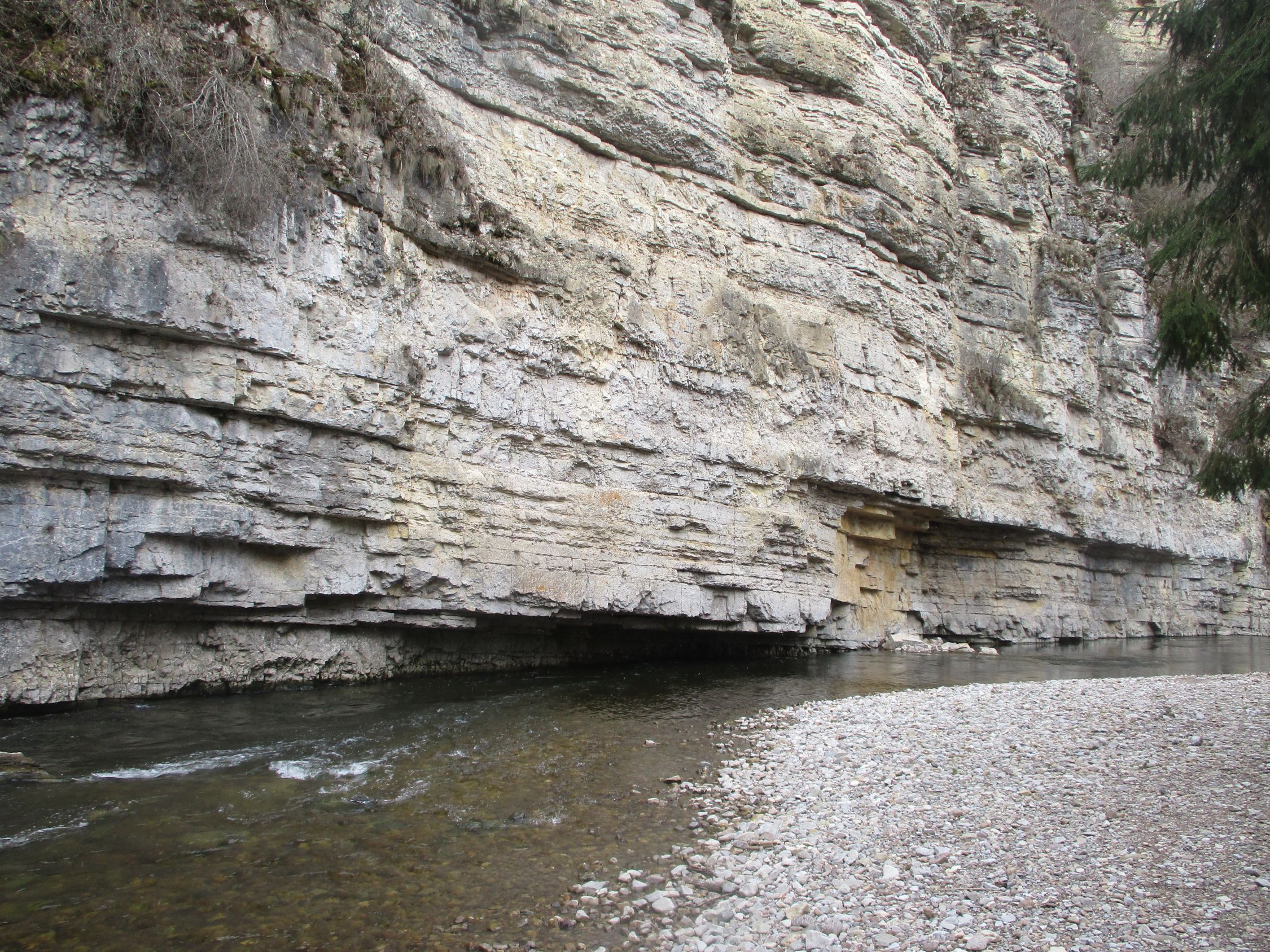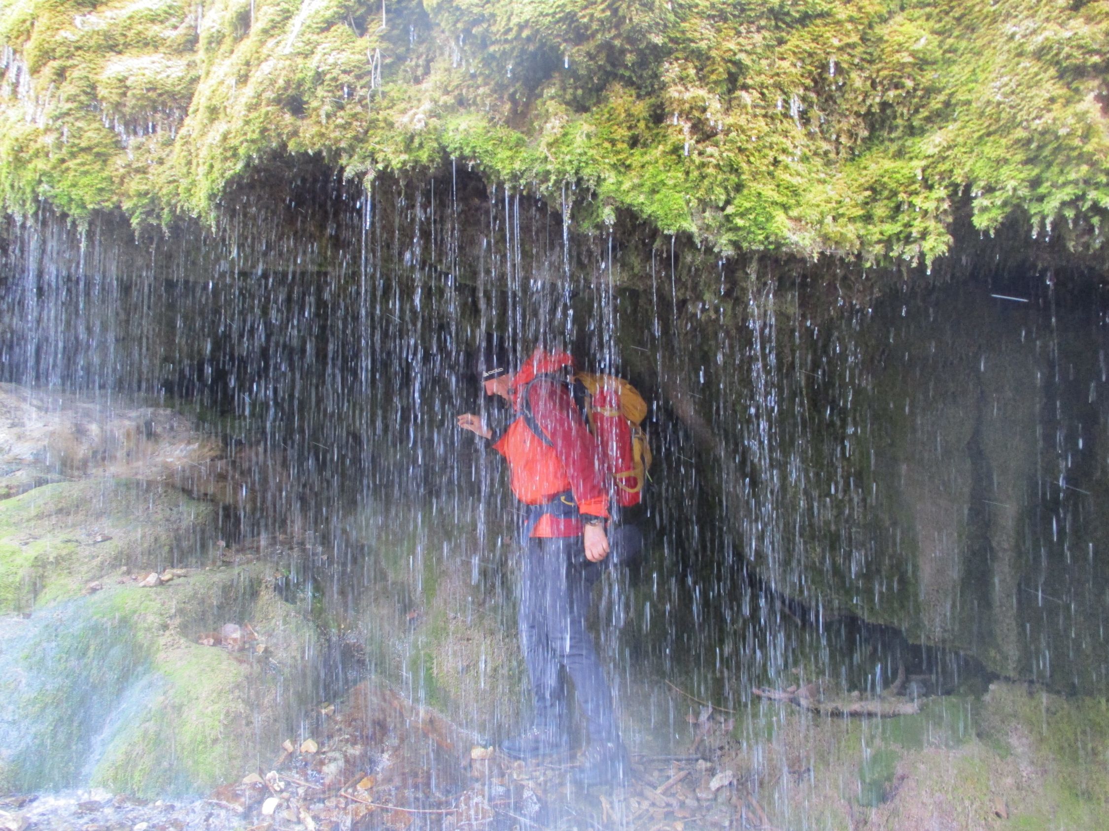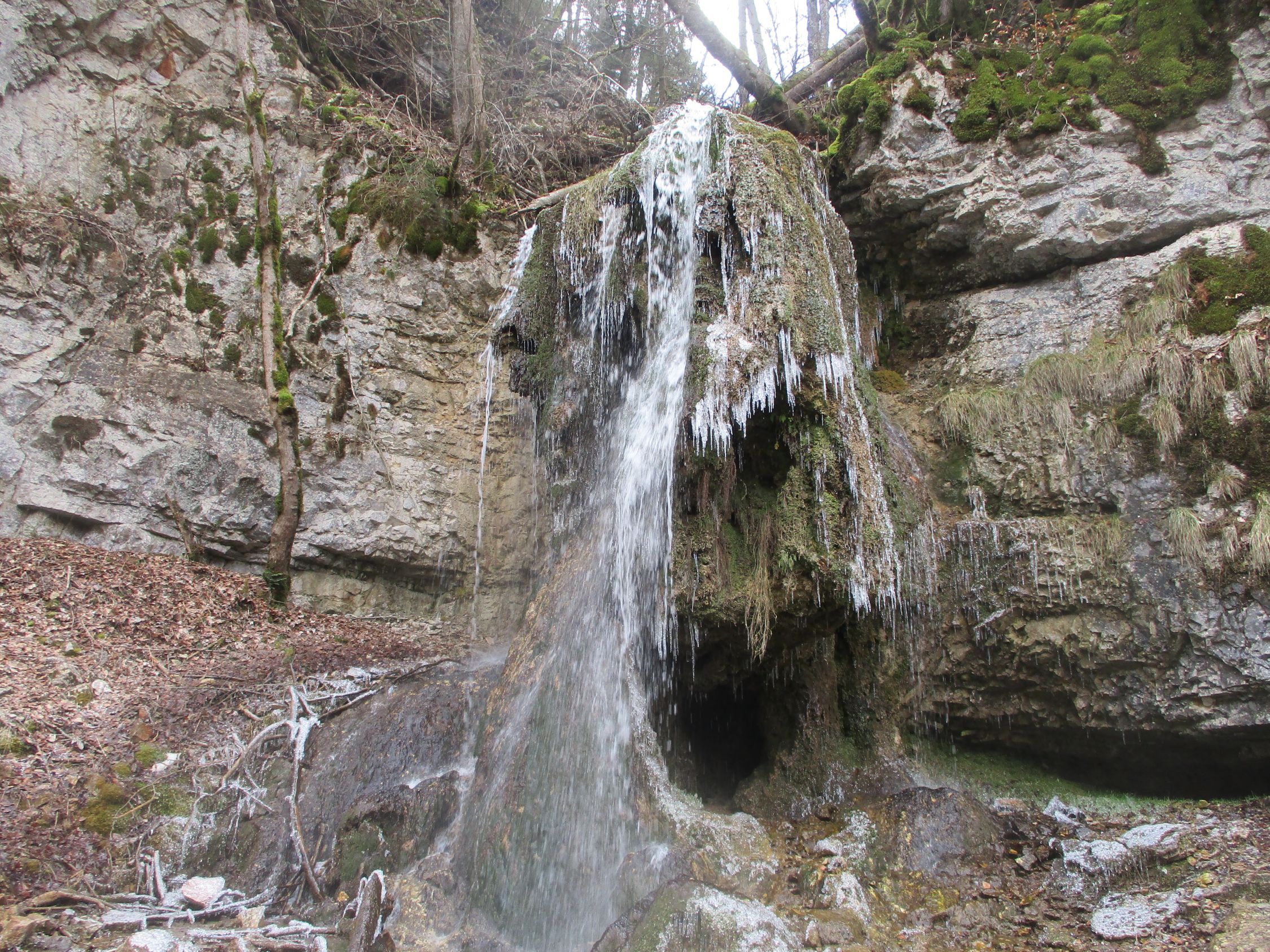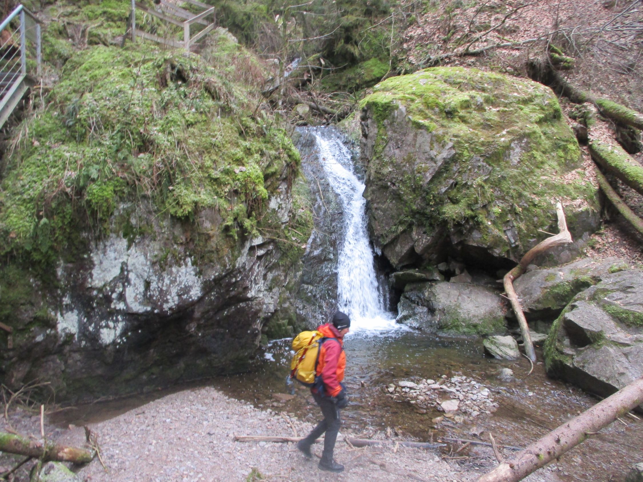Nie würden wir im Winterhalbjahr ohne Pickel und Steigeisen ins Wutach-Schluchtensystem einsteigen. Werden diese Utensilien nicht benötigt, so wie heute, dann soll´s auch recht sein. Alle drei Schluchten waren wohl aufgrund der vorangegangenen längeren Wärmeperiode komplett eisfrei, die Wege überwiegend trocken. Dezent sonnige Abschnitte wechselten mit leichten Schneeschauern, die sich am Nachmittag verstärkten, weshalb der Schnee in der Gauchachschlucht dann auch liegen blieb. Bei Tourenbeginn morgens nach 10 um die minus 5, später gegen Null gehend. Dort, wo der Wind hinkam, merklicher Chilleffekt. Am heftigsten war es nach dem Ausstieg aus der Gauchachschlucht auf dem Hochplateau auf Döggingen zu.