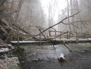 Auffallend viele Schwemmholzanhäufungen in der Gauchachschlucht, die aber offensichtlich nicht vom mehr in der Wutachschlucht aktiven Biber verursacht wurden.