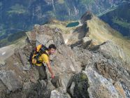 Vom Cholplatz mit dem Seilbähnli auf Breitlaui. Durch den Haglisbergwald zum Bristenstäfeli. Steil zum Blacki und Bristenseeli hinauf. Der Pfeil der den Einstieg auf den Laucherengrat markiert, ist schon vom Seeli zu erkennen. Dem Grat entlang zum Rot Bristen hoch. Es folgt ein kurzer Abstieg und weiter gings die letzten 310 Höhenmeter zum Bristenstock hinauf.