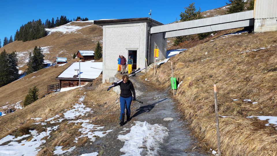 Grenzwertige Skitour auf diesen schönenn Aussichtsberg. Von Eggli muss man die Ski ca. 100Hm hinauf tragen, dann Slalom zwischen Grasstücken und Schneefeldchen. Zwischen Gueben und Grappalazär durchgehende und tragende Schneedecke. Von Grappalazär zuerst steil und mit vielen Grasbüschel durchsetztes Terrain, wir haben die Harscheisen angezogen, ab ca. 2100m bis zum Gipfel durchgehende und angenehme Schneedecke. Die Abfahrt um ca. 12.30: oben weicher, drehender Schnee, dann Slalom durch die Schneefelder und Büsche, zuletzt wieder schöner Firnschnee bis Pkt, 1778. Die letzten Meter zum Berggasthaus Sassauna wieder mit geschulterten Skis. Leider war die Beiz entgegen den offiziellen Oeffnungszeiten geschlossen - schade, wir hatten uns sehr auf einen schönen Abschluss auf der sonnigen Terrasse gefreut.