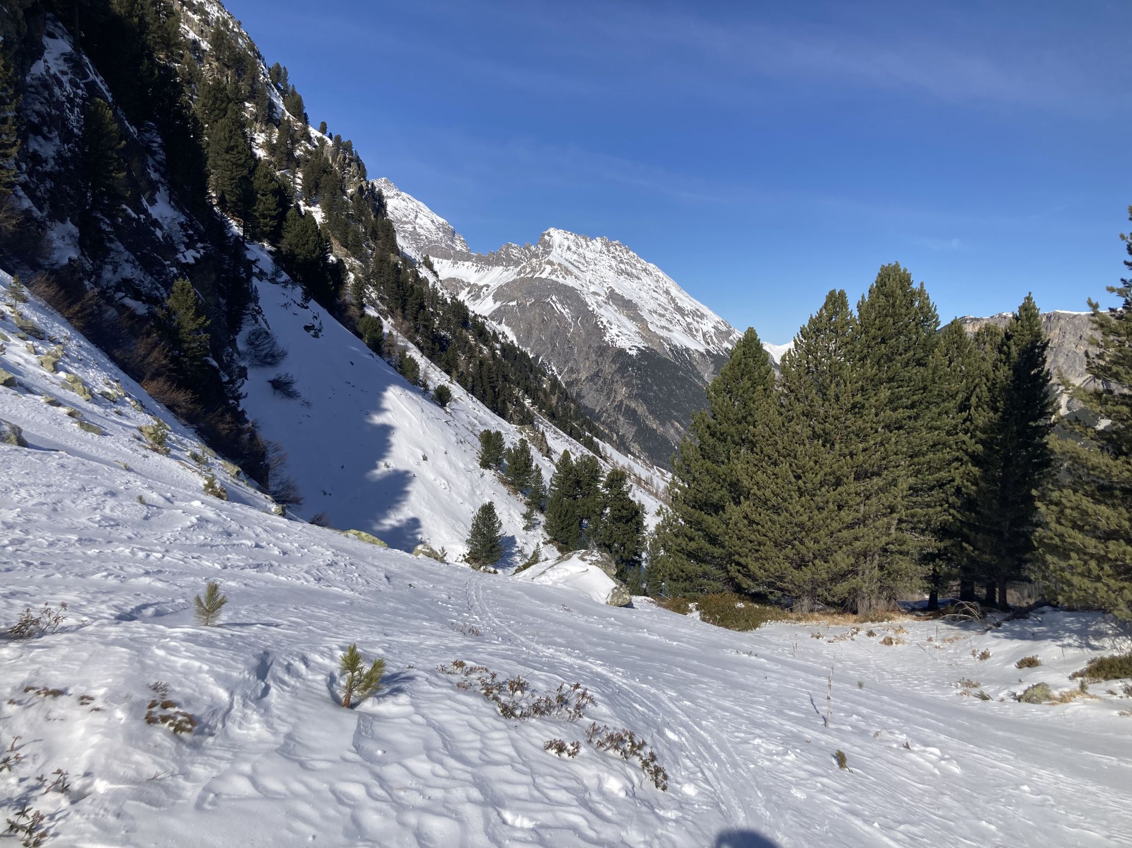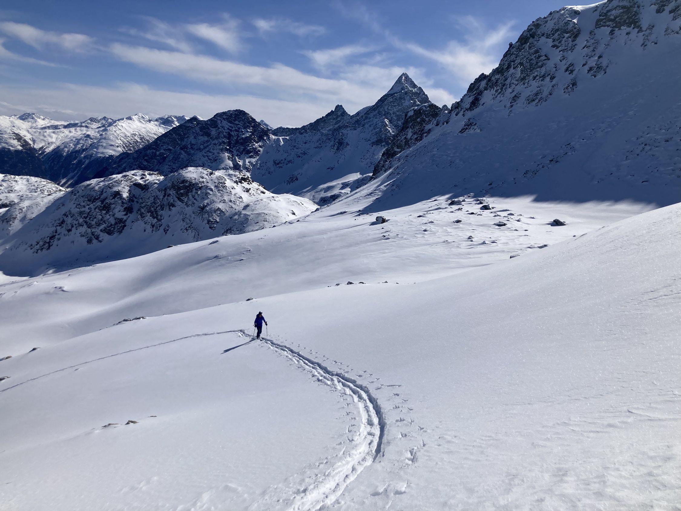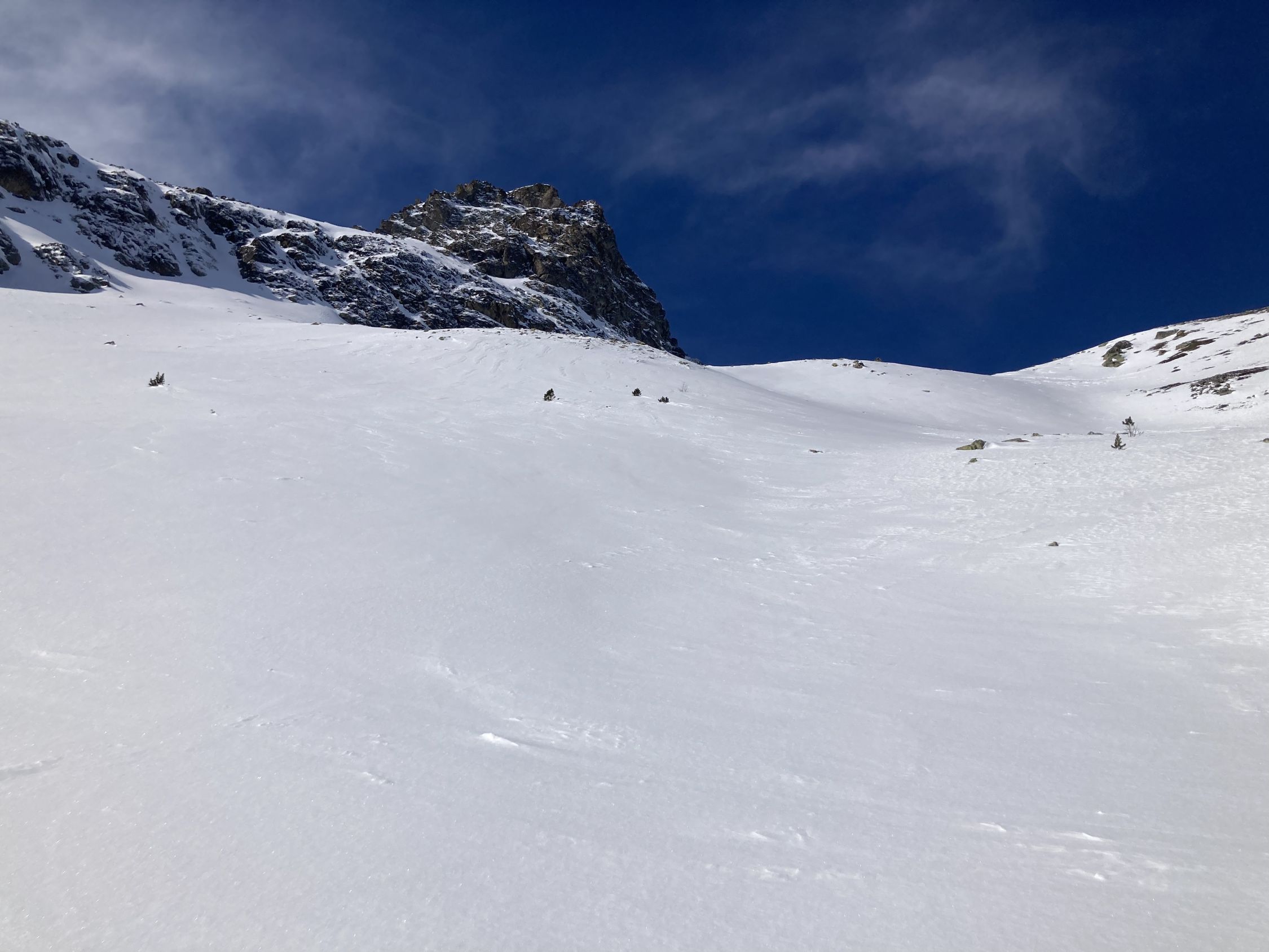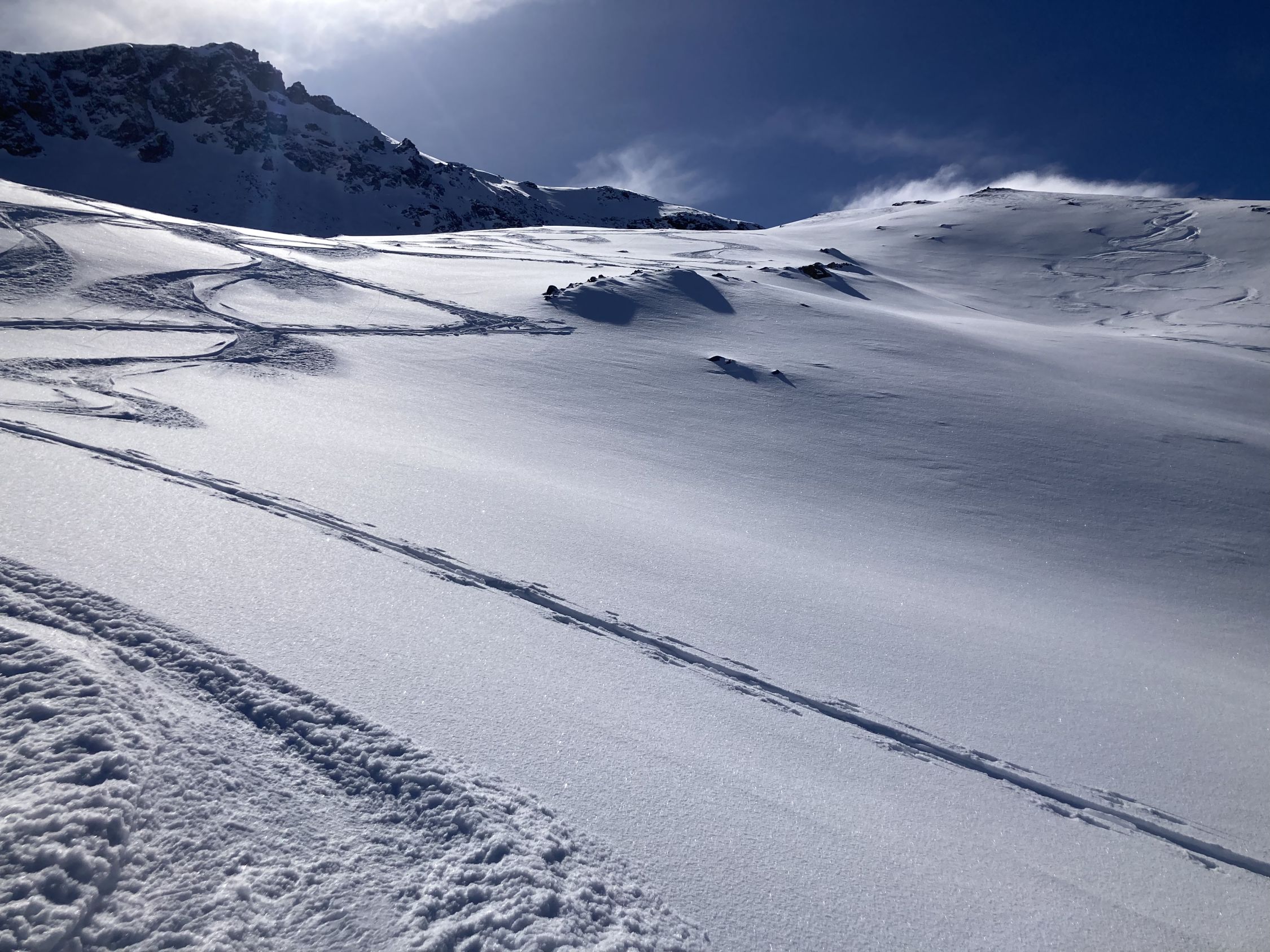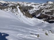 Tour seit den letzten Schneefällen nicht mehr gemacht. Im unteren Teil erwartungsgemäss etwas ruppig. Danach viel besser als erwartet. Schöne Neuschneeauflage von ca 10 cm auf tragendem Firn.