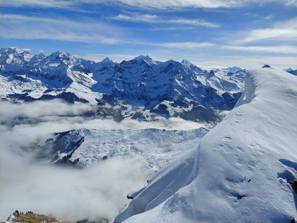 Aufstieg: Vom Parkplatz bis Steiboden hat es 5 – 10cm Pulver auf harter Schneeunterlage. Durch den Steilhang Richtung Landvogtehore steigt der Pulveranteil auf bis zu 25cm. Die Spur führt bis 50m unterhalb der Wechte. Von dort zu Fuss in guter Spur zum Pass. Der Rest bis zum Gipfel ist tipptopp gespurt.