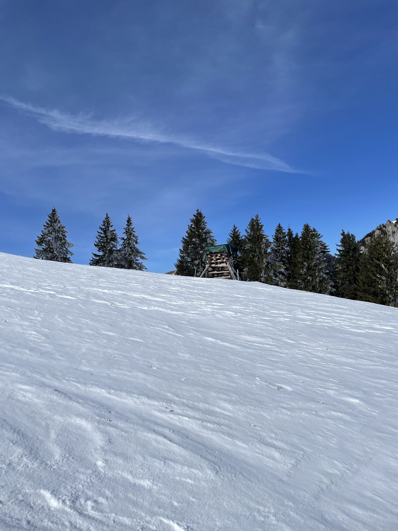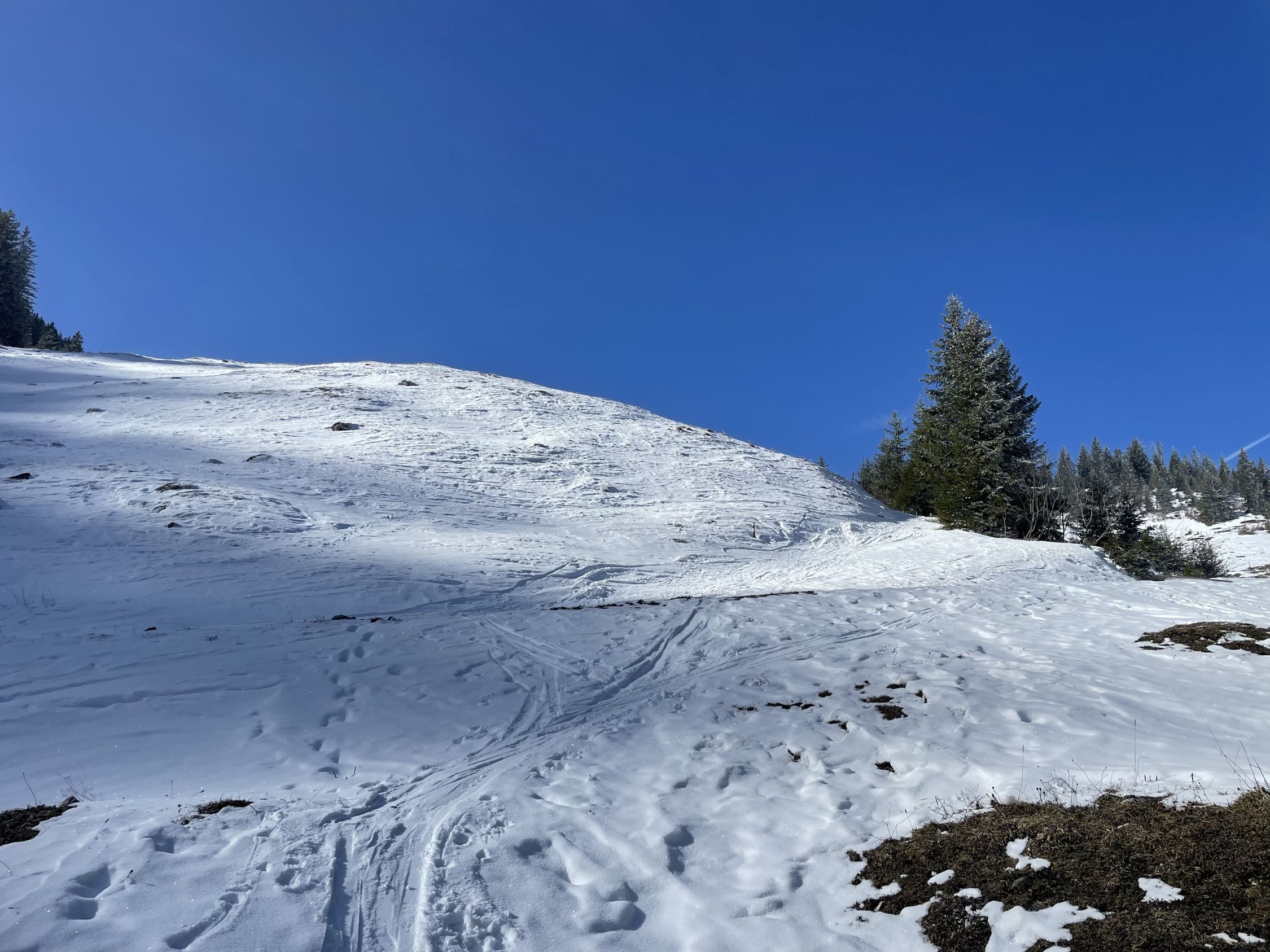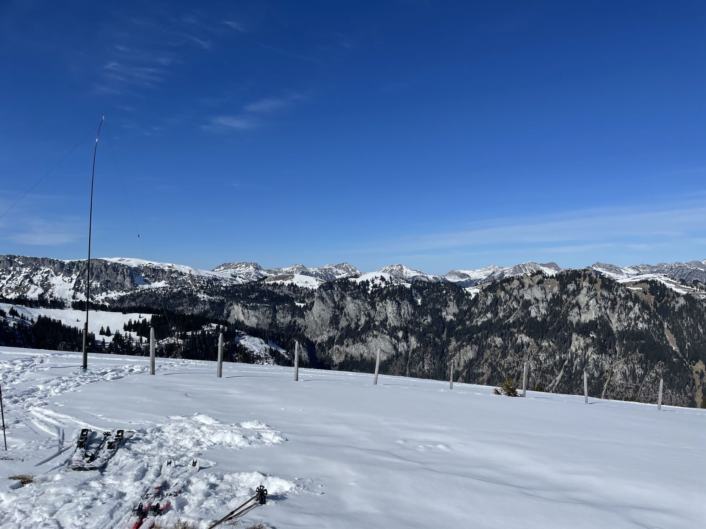 Heute wollte ich einem alten Freund eine meiner bevorzugten Touren zeigen. Die Verhältnisse waren wirklich ausgezeichnet, das Smiley lügt nicht. Aufstieg bei angenehmen Temperaturen und bestem Wetter, zu Beginn auf der Alpstrasse. Von unten weg wenige cm Pulver, zuunterst nur teils mit Unterlage, weiter oben dann durchgehend. Der Gipfelhang schon im Aufstieg prächtig, oben schöne Rast mit den wenigen anderen Tourengängern, die heute unterwegs waren. Die Abfahrt dann eine der besten dieser komischen Saison, wenig Pow auf tragender Unterlage. Ein voller Erfolg, fanden wir beide.