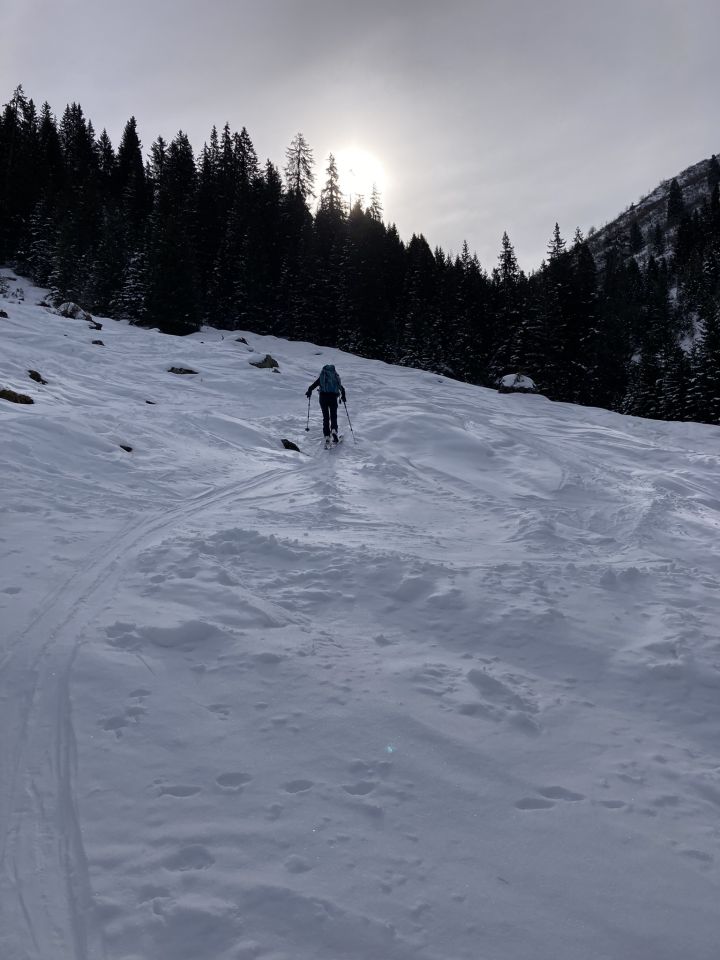 Bei der Anfahrt nach Sankt Antönien waren wir fast geschockt, wie aper es überall ist. Ab Sankt Antönien dann aber gleich Schnee auf der Route. Über Mittelarschina bis zur Waldpassage muss man öfters die Skis über apere Wiesenstücke tragen. Ab 1800 m dann durchgehend und genügend Schnee: Tragende Unterlage mit etwa 15 cm Pulverschnee drauf. Beide Gipfelabfahrten waren sehr schön zu fahren; erstaunlicherweise ohne einen Stein-Kontakt. Haben auch noch unverspurte Hänge gefunden.
