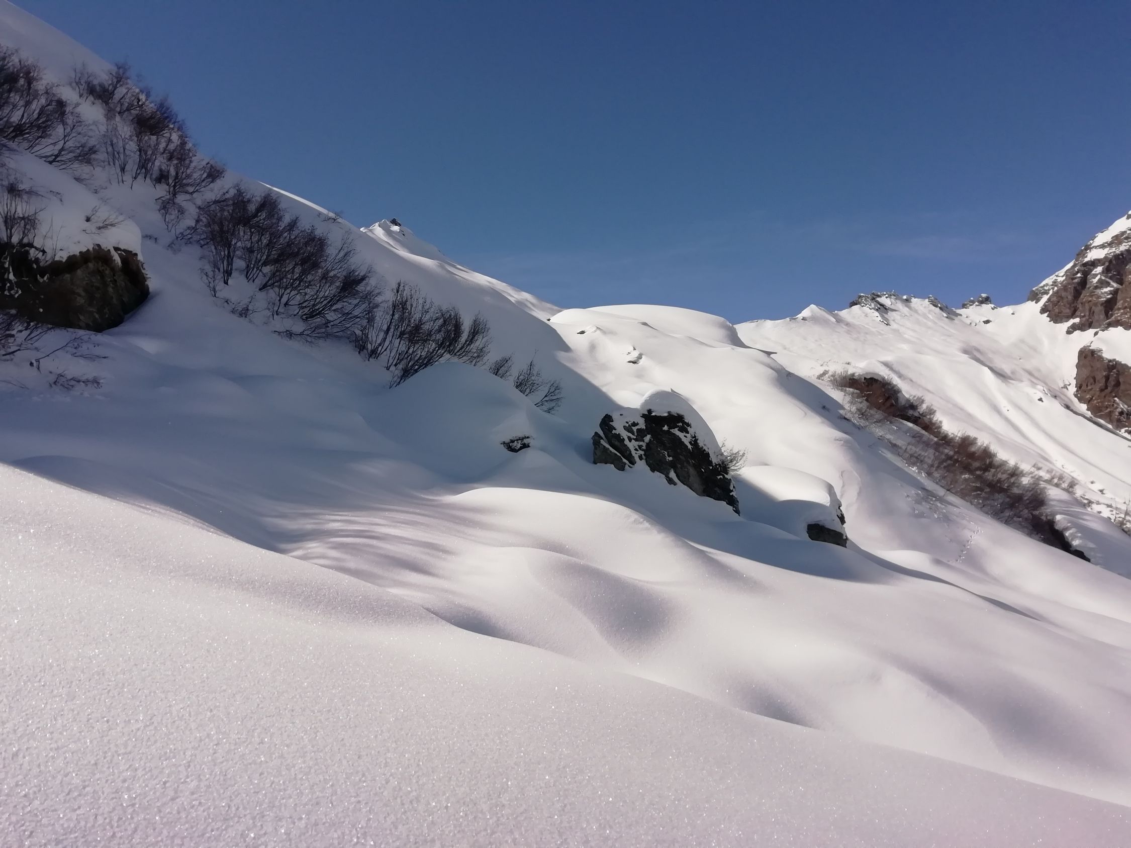 ab 1600m 20 bis 30 cm unverspurter Pulverschnee, auf dem Almstraße im Aufstieg noch gut machbar, auf der Abfahrt mind. 8mal Ski aus und wieder an. Oben ausgezeichnete Verhältnisse, wegen des langen Aufstiegs und der Schiebestrecken am Rückweg insg. nur "machbar". Strenge Spurarbeit ab 1600m bis zum Risetenpass. War den ganzen Tag völlig alleine unterwegs.