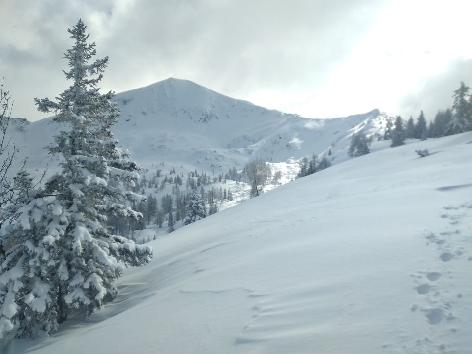 Unten wenig Neuschnee meist ohne Unterlage. Ab ca 1200 mit Unterlage. In den Ost und Nordhängen viel verfrachteter Pulver. Kammlagen gegen Gipfel abgeblasen mit etwas Neuschnee