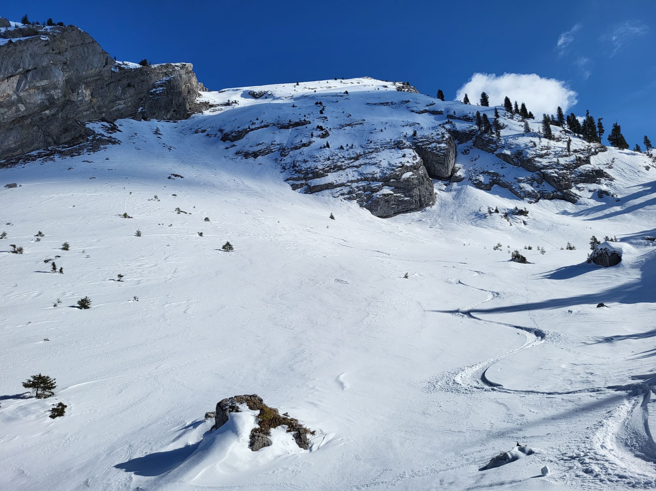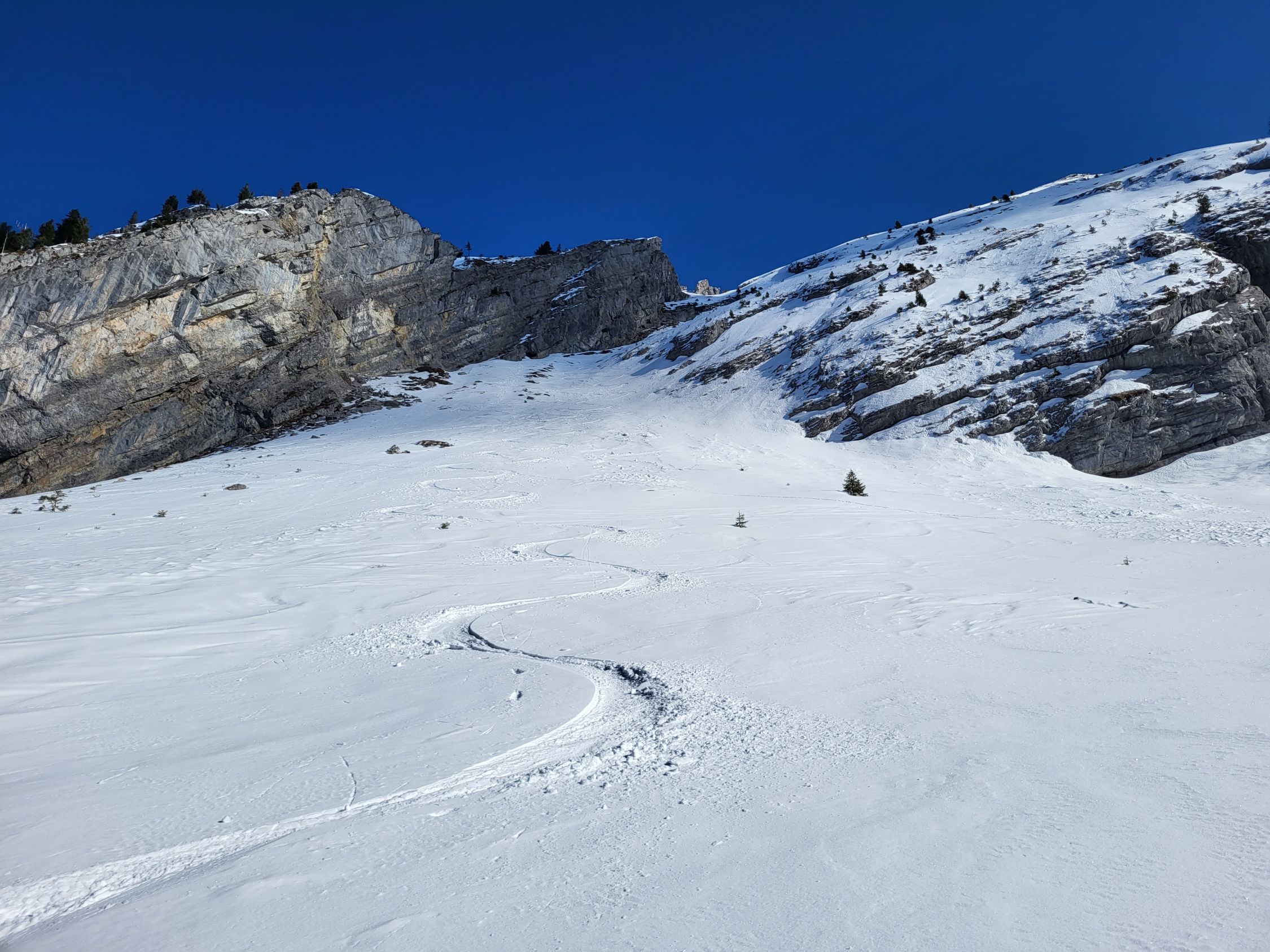ABER: Wider Erwarten Pulver sehr gut im Wildgrimmi und es ist doch noch so ein klein wenig Winter im Diemtigal!