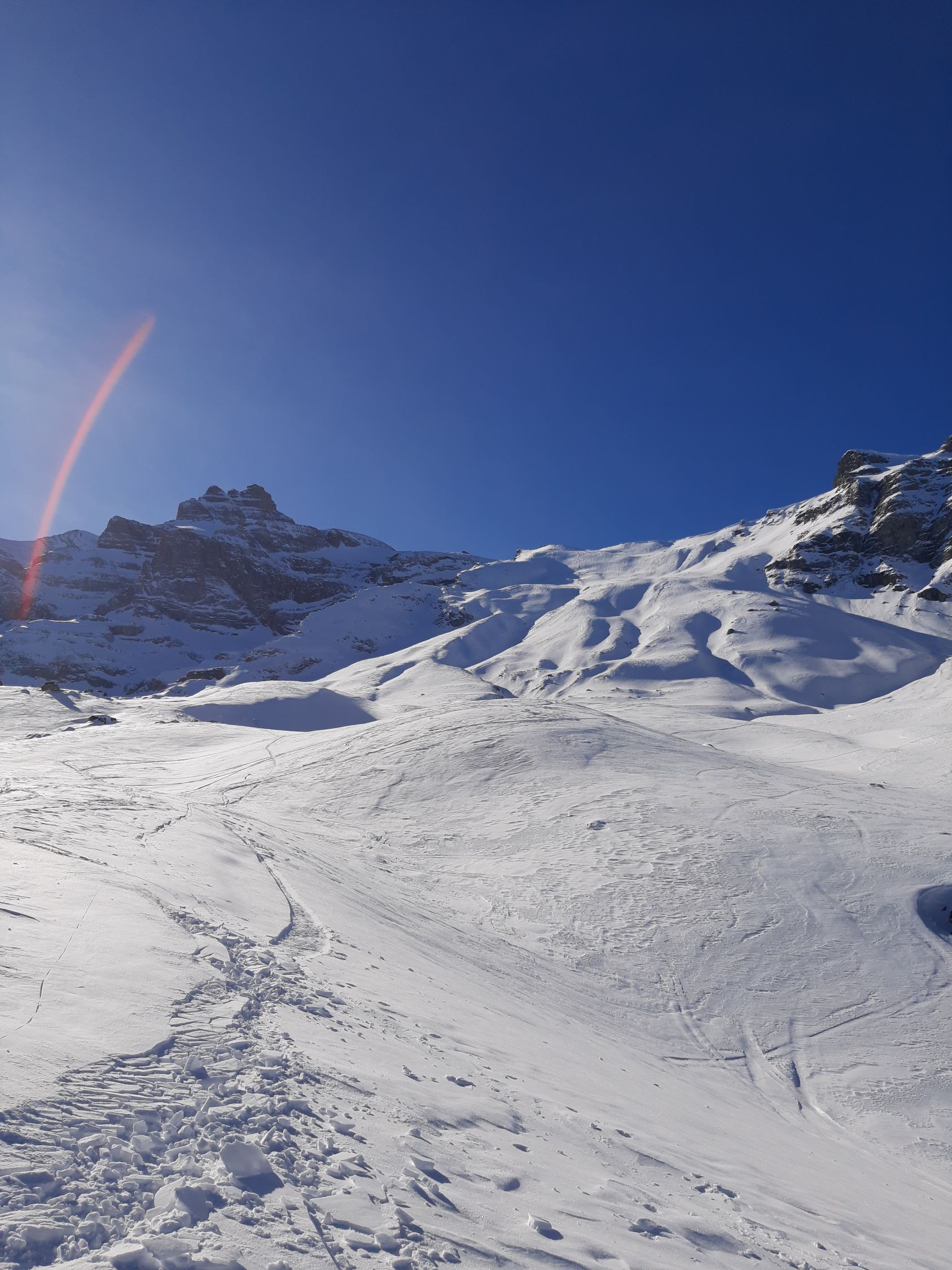 Der Hohtürlihang ist arg verblasen. Man hat gefühlt bei jedem Schritt wechselnde Verhältnisse! Extrem mühsam zum Aufsteigen und Abfahren!!!