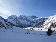 Wie überall - braucht Schnee. Aufgrund der Ausgangshöhe und der Nordexposition aber noch eine Weile machbar.